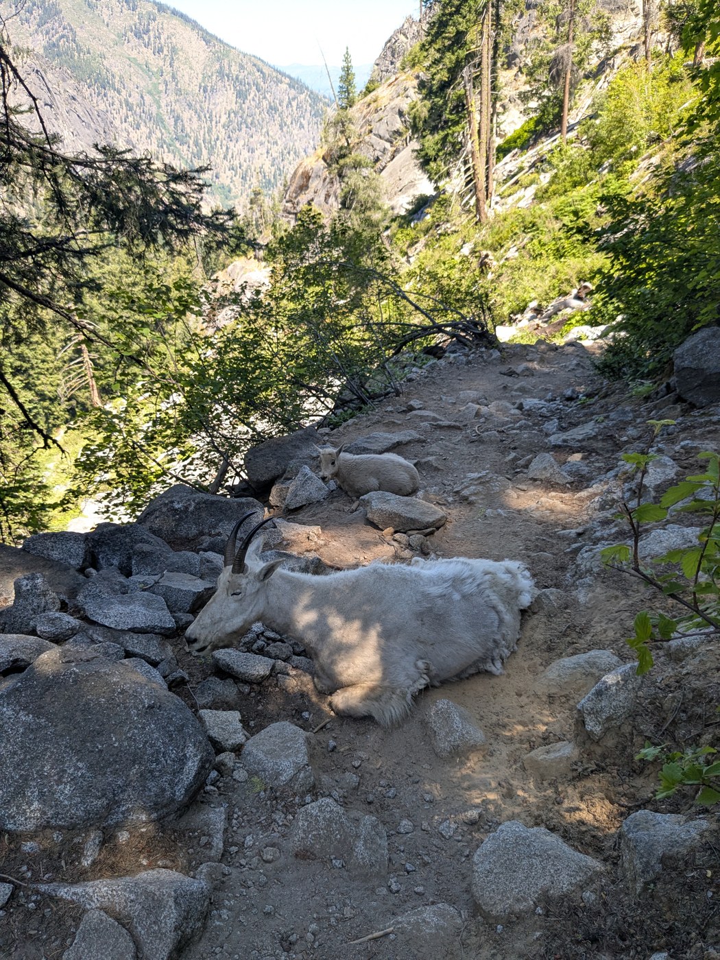 I saw 3 mountain goats on the trail. One of them seemed a bit stubborn and kept walking towards me so I had to scare him off but otherwise it was pretty magical to see them up close. I did catch a glimpse of a bear off the trail on the way back down but didn't stick around long enough to get a close look.