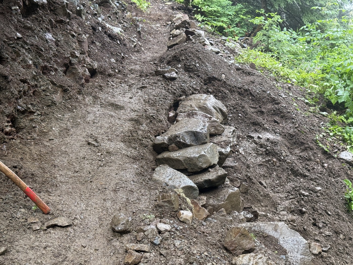 I was part of a 6 person team who came out for 4 days/3 nights to do some repair work on the trail up to Independence Lake. Our monumental project was to build a small rock structure to support the trail where it's been suffering a lot of erosion. Multiple other projects to get organic material off the trail from some fallen trees, removing a few trip hazards, improving drainiage and getting a few logs off the trail. We moved a lot of material to accomplish these goals and hope you find the trail in good condition on your next hike.