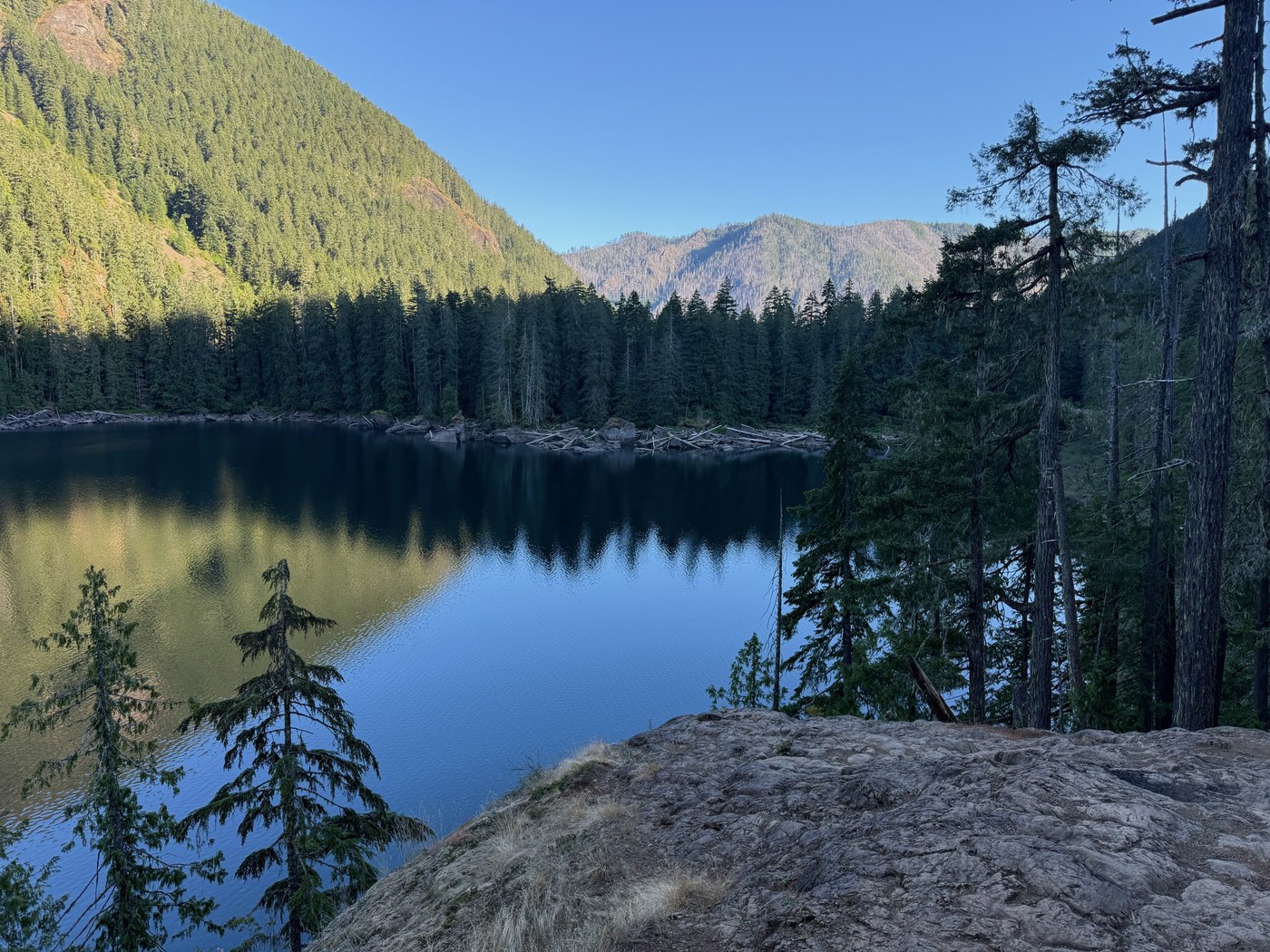 I went up to the lower lake after work. Despite several cars at the trailhead, I only ran into three or four parties. Enjoyed a snack at the rock overlooking the lake. Some bugs discovered I was there, but they weren't much trouble, especially considering I was lakeside at 7 p.m.