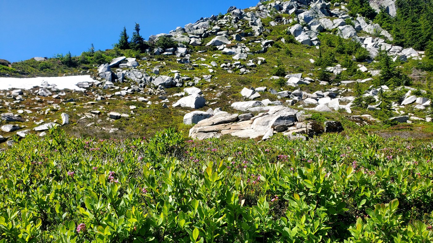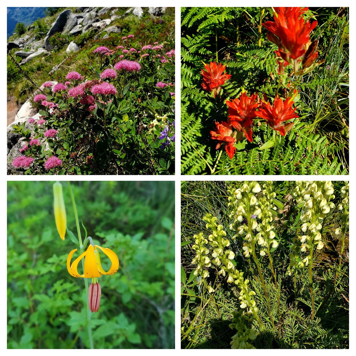 Hiked Tues. July 15....very few ppl out on this toasty, sunny day. Wildflowers abundant and glorious once at ~4,500'. Many below that! Bugs, black flies + mosquitos, greeted us at the top, and then followed us down to about 5200'. They seemed to increase in population as the temps warm up. But still worth it!!