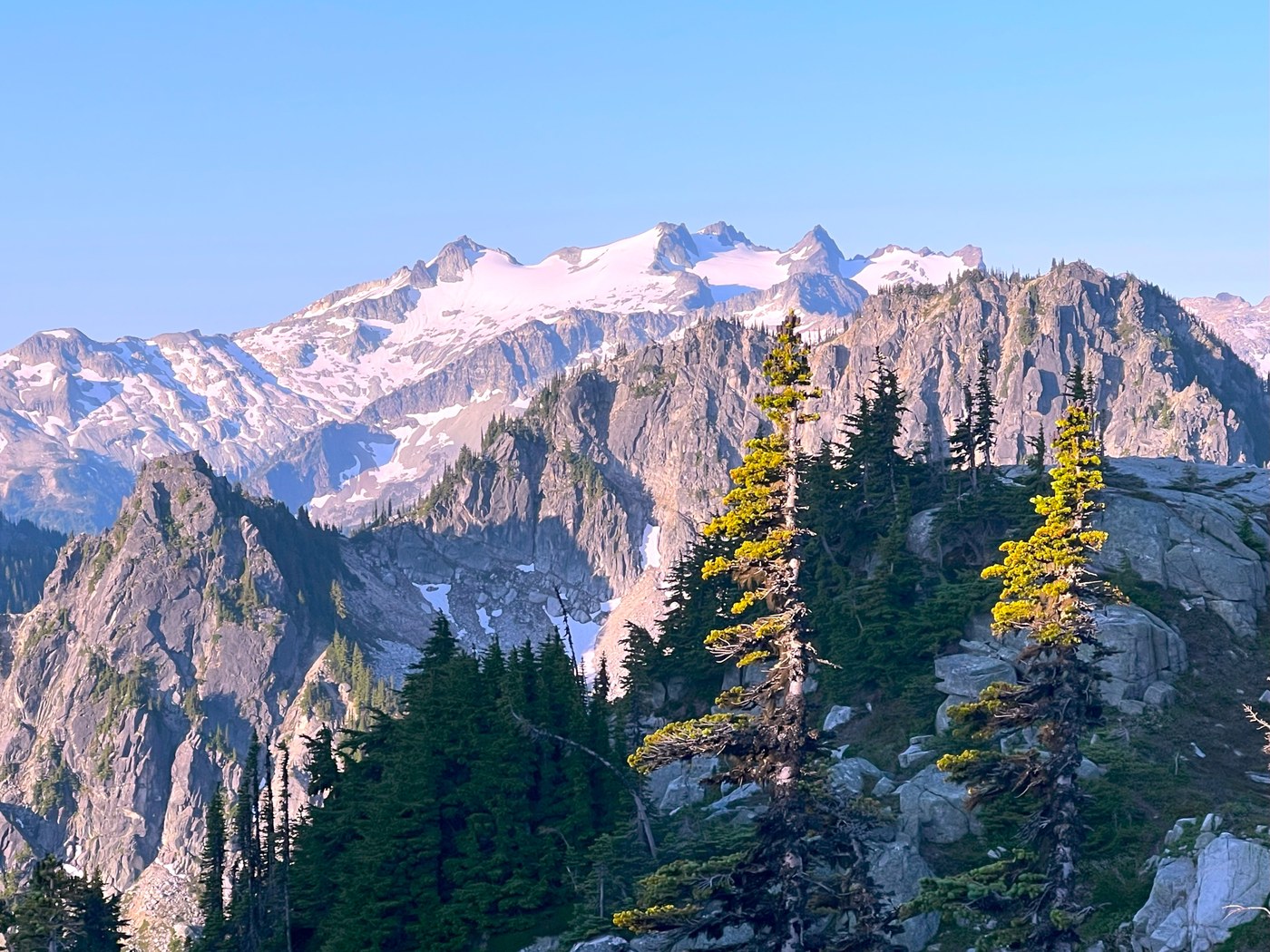 Views: The benches adjacent to North Thunder Mountain Lake had dramatic southward views of Mt. Stuart, Mt. Daniel, and Mt. Hinman. We also got views of Glacier Peak and Mt. Baker.