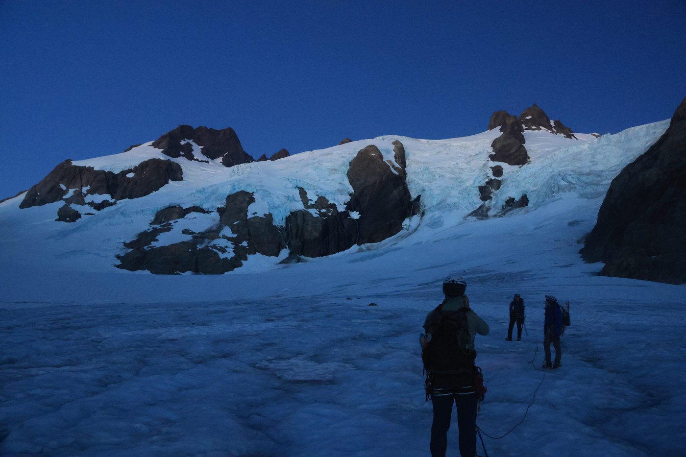 Day 3: 0230 start to beat the heat. Summit day. I placed #0.5, #0.75, #1, and #2 on the summit lead climb. It was cruiser (and a fun lead). Crevasse risk is currently minimal. Back to Glacier Meadows for dinner and rest.