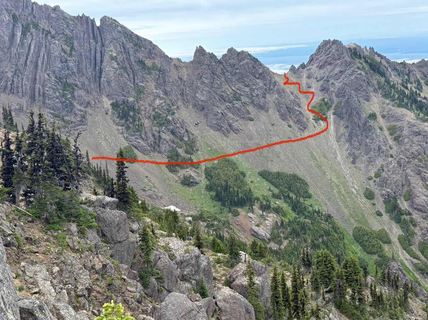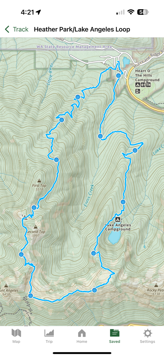 The route can be hiked in either direction. There are pros and cons to each direction. Hiking up Heather Park and down Lake Angeles could provide a swim opportunity later in the day between July and September. The sketchiest section is the section between the saddle above Heather Park and the pass on the ridgeline between Mount Angeles and Second Top. There are some sections where the trail passes through steep slopes with loose dirt and gravel and also some sections along narrow ledges. If you want to take in the view in this area, I recommend stopping before looking. Otherwise, focus on trail. If you hike the route in the clockwise direction (up the Lake Angeles trail and across Klannane Ridge), you hit this section and you aren't comfortable with the exposure, you can bail out by backtracking to Klannane Ridge and existing down the Switchback Trail. Personally, I find this sketchy section to be the most rewarding because it feels remote and the wildflowers can be dense. Because this section is less frequented by hikers, it also less maintained by park staff and volunteers. Don't be surprised if there are downed trees or washouts.