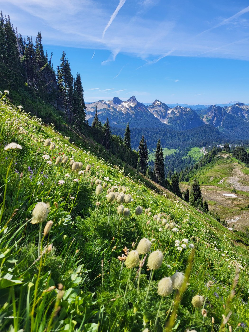 Good views of Mt Adams, Hood and St Helens. Wildflowers and marmots were out.