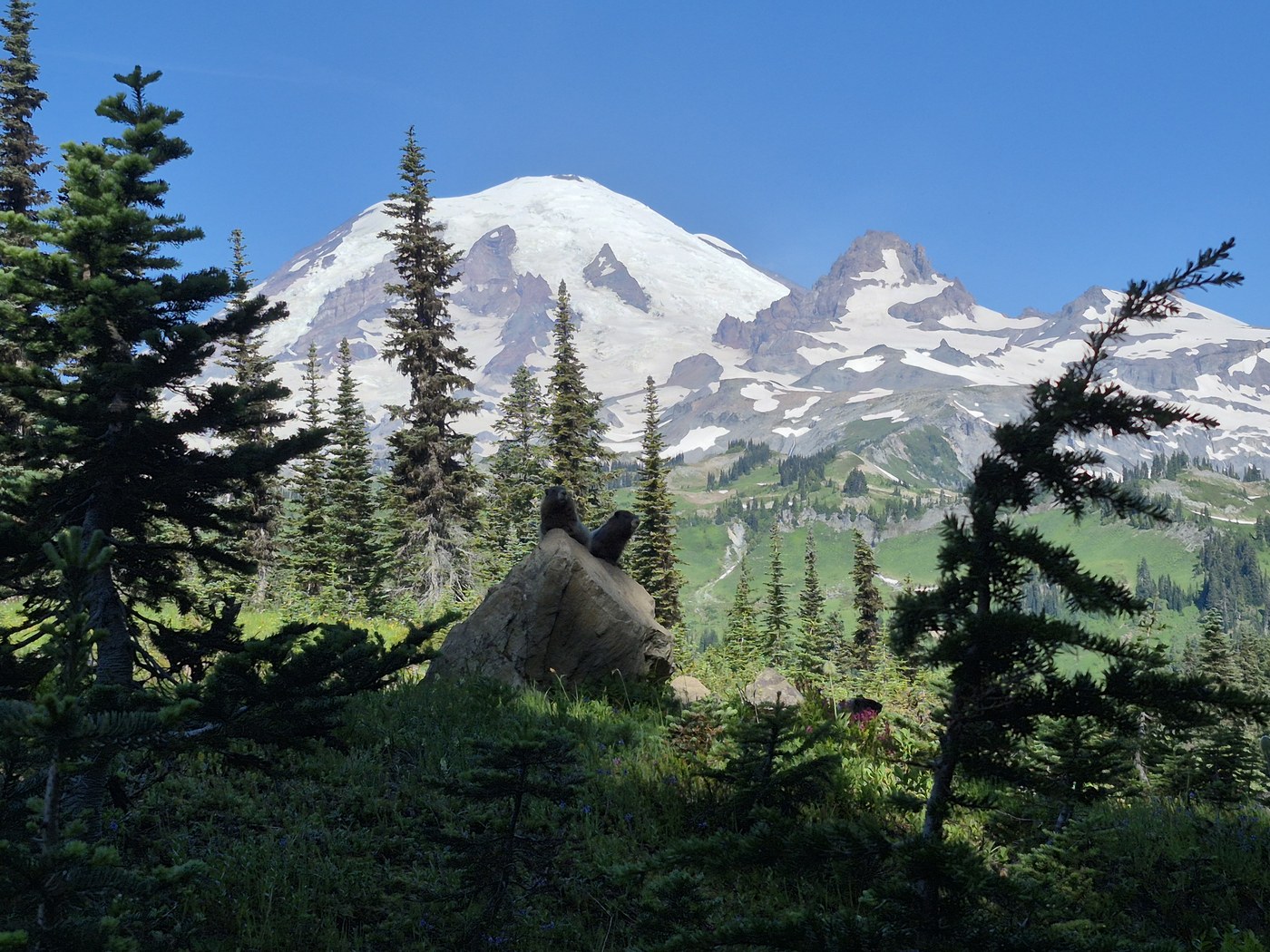 I was happy to see that there is a new bridge at Nickel Creek so no more detour downstream needed. There is one big log to climb over about halfway up to the Divide. The Marmot family up on the Divide seems to be doing fine.