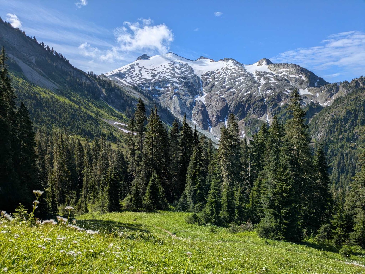 Lots of ripe berries in the valley, plenty of blooming flowers, especially in the ascent from Hannegan pass.