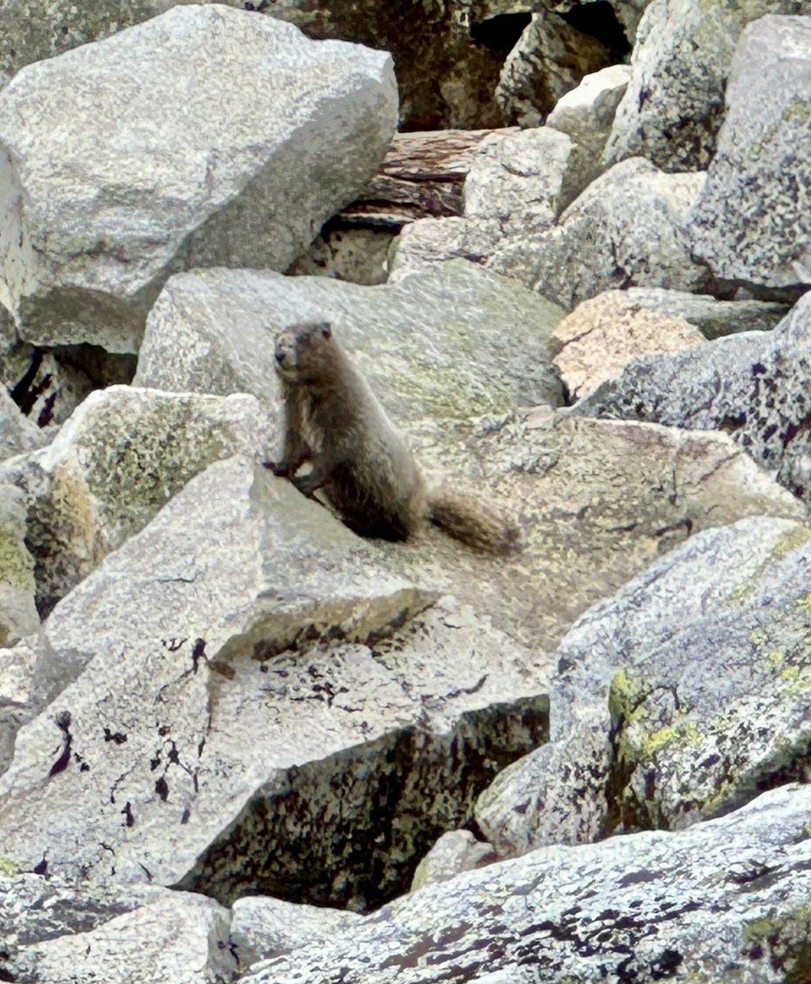 The first boulder patch – at about mile two – offers stunning views of Lichtenberg Mountain and Welldigger’s Ass. (Actual name of the peak – I didn’t even need to make a butt joke for that one. Nice.) Here, I was greeted by a very charismatic Hoary Marmot that could Whistle better than Flo Rida.