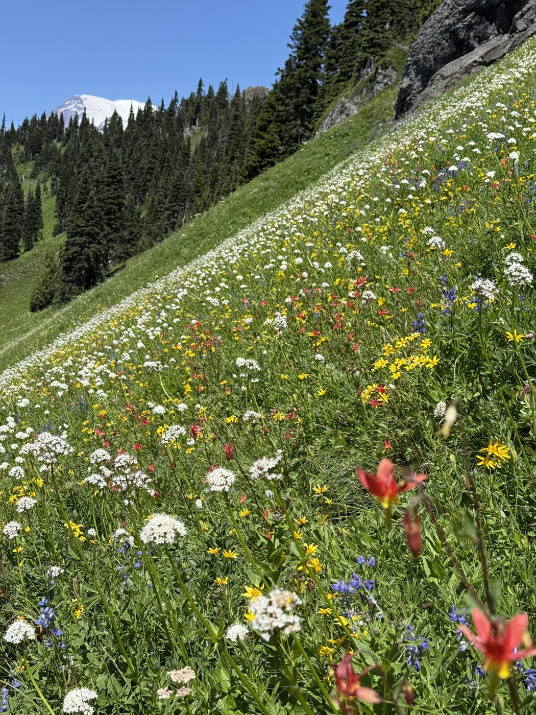 The wildflowers were pretty at Van Trump park but even better as you hiked up towards Mildred Point. Views are expansive from Van Trump and on the climb up to Mildred.