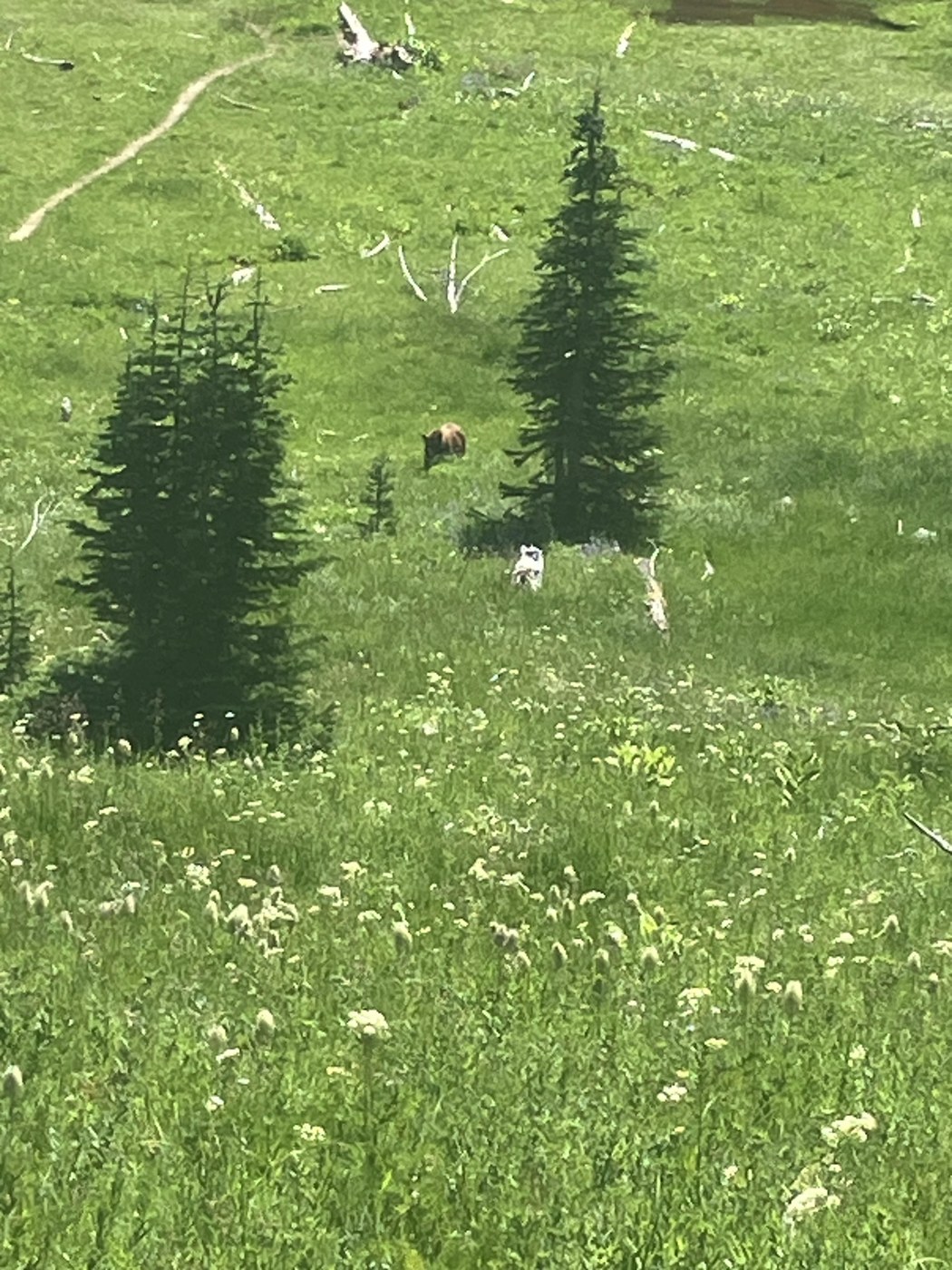 Had a gorgeous hike up to Tamanos today -- and we saw a bear. She was down by the Owyhigh Lakes (as we were descending) and we were up on the trail 400 feet away. She was munching away and disregarded us completely, but just a heads up! Two clear bear scat -- one recent -- right on the trail.