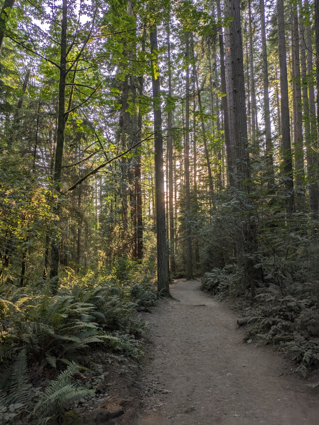 Did an evening hike around 7:30pm. The parking lot was maybe half-full to less than half-full. Easy to find a spot. It was a lovely, warm evening to catch a sunset. Well-maintained wide trail. Lovely foliage. A lot cooler in the shade of the trees.