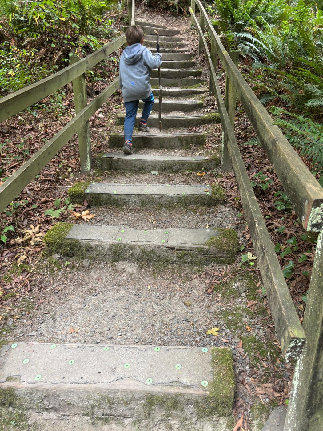 This hike was pretty good for all involved, even our kids (6.5 and 4) who enjoyed trying to count the steps each time we did the hike. It varied between 145-167 depending on who was counting and if roots were counted as steps. It can be pretty steep coming back up, but if you take your time you'll be fine. Additionally, depending on where you start from, the distance can vary as we were staying in the campground and it ended up being a two mile round trip, but if you are starting in one of the parking lots, obviously your trip will be shorter. No bugs or obstacles and the trail was well kept.