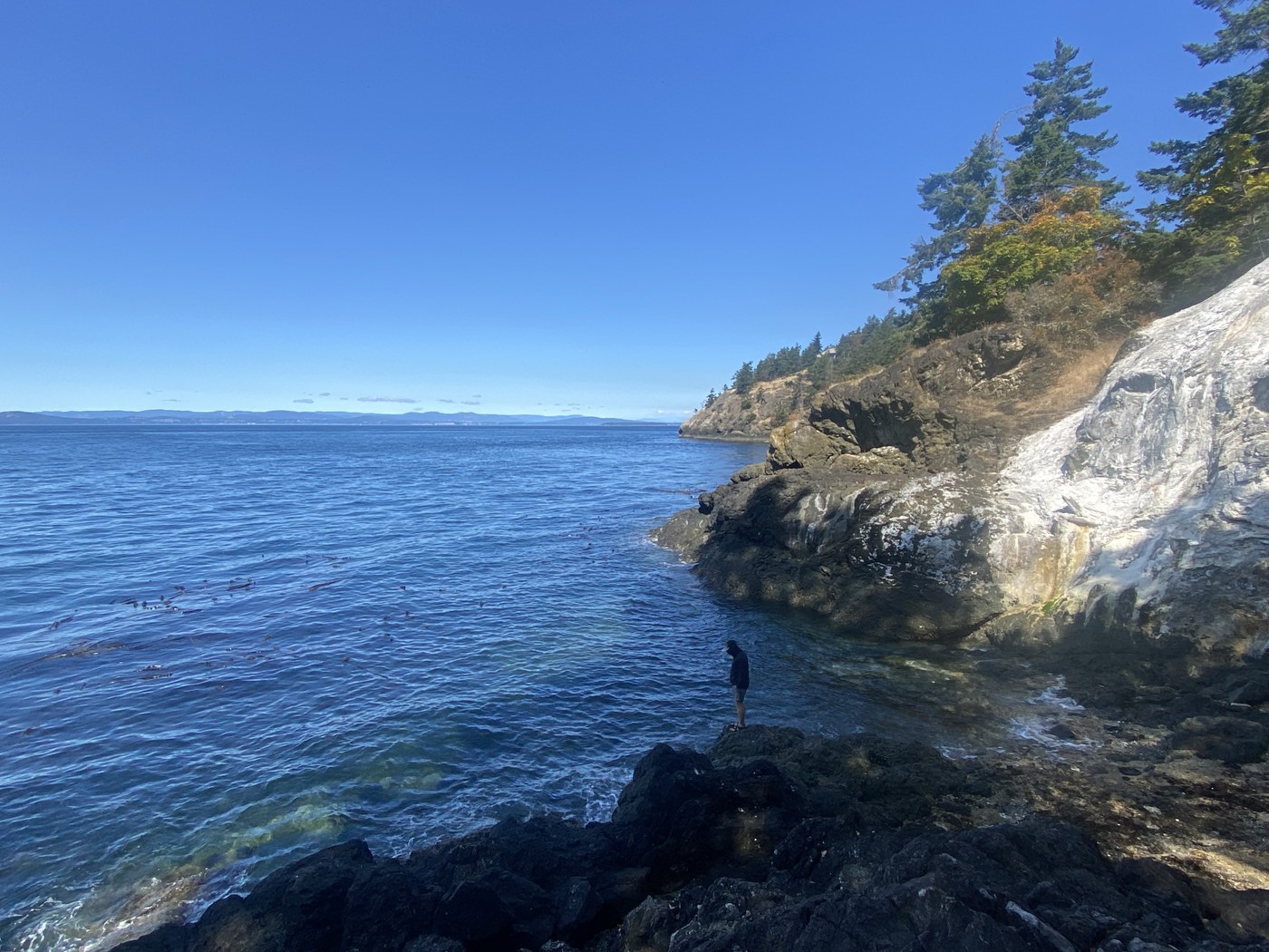 Intertidal pools and steep seashore cliffs made this trail a ton of fun. We wandered south as far as Deadman Bay for flowers, shells, and driftwood rambling.