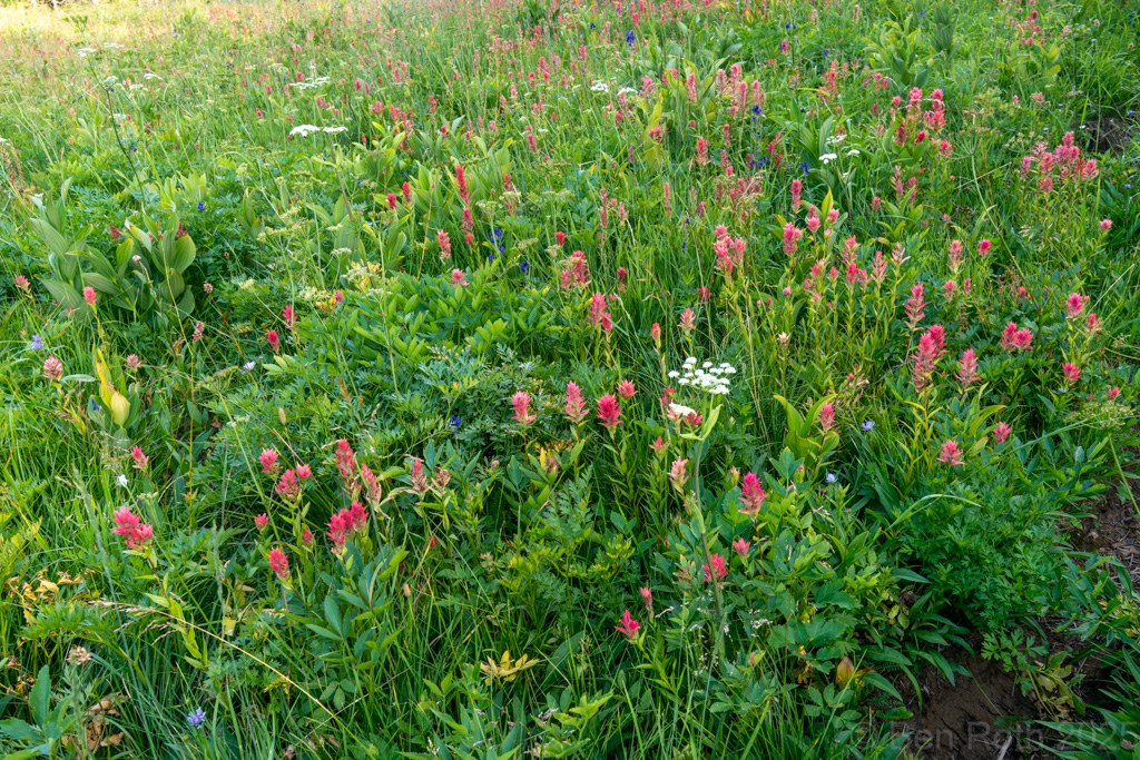 Should have done this a few weeks ago as the vast majority of the bloomage is far past its prime. Still quite a number of stragglers so not a total loss. It was nice to do this with the temperature down 15F+ than normal. The Teanaway region generally has light canopy with very dry and loose soil that loves radiating the heat.