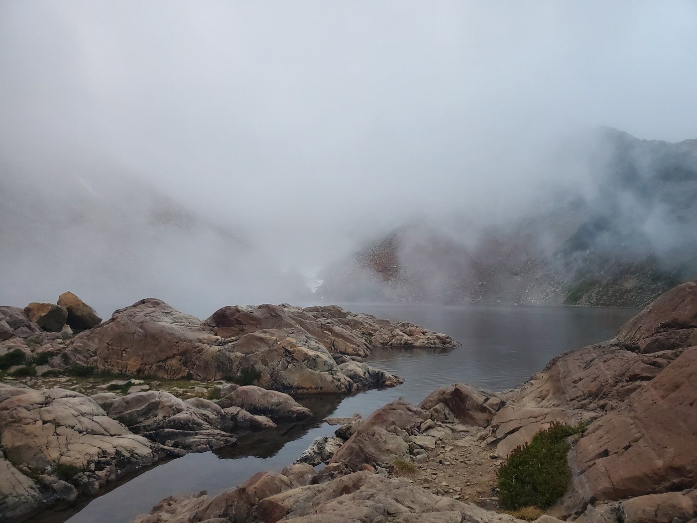 Other notes -- we encountered a fair bit of poop up in the basin. If you can't make it to one of the backcountry toliets, be prepared to carry it out. More and more areas are requiring it now -- get use to it and have a system. With the high use of this area, plus the rocky terrian, burrying is not a great option, plus people aren't even doing that. I have a dog that is unfortunately good at sniffing out poop (and eating it :( , and she managed to find all sorts of piles behind rocks or barely concealed under rocks, often with accompanying TP. Bad form, hikers! We also picked up and carried out two bags of dog poop up in the basin. As a hiker with a dog, I try to be a "dog ambassador" to keep other hikers happy with dog people. Seeing plastic bags of poop on the side of the trail after a hellish grind up to a beautiful basin does not make them happy, and that's how we dog owners will end up losing access to these areas. (The bags were still there on our second day, so we grabbed them on our way out. Since we were the only overnighters with a dog that night, clearly they had been abandoned. ) PLEASE, PLEASE, PLEASE-- if you aren't prepared to deal with your crap, human or dog, then stay out of the backcountry.
