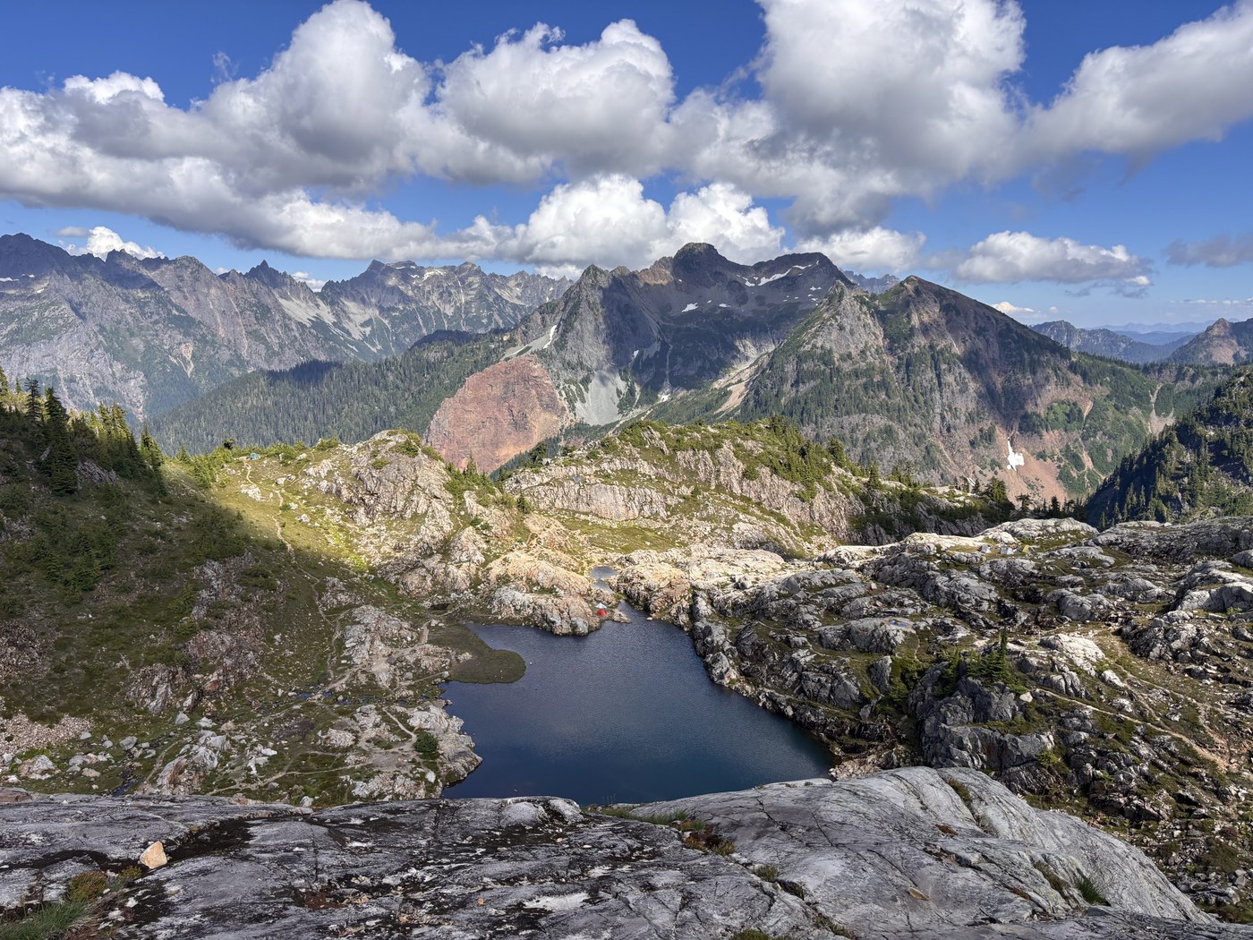 What a great time to visit! Sunny, not too hot, not too cold, the lake in the basin a great temp for swimming, wildflowers, and some ripe blueberries in the top half of the trail. It was super busy however, with what seemed to be few established campsites left in the early afternoon and folks still arriving into the evening hours. That being said, the terrain sort of forces everyone to spread out, so it was still peaceful & quiet. The ground is rocky and rooty, hard to dig into which unfortunately has led to noticeable surface waste :( A challenging last two miles but totally worth it for the absolutely breathtaking landscape!