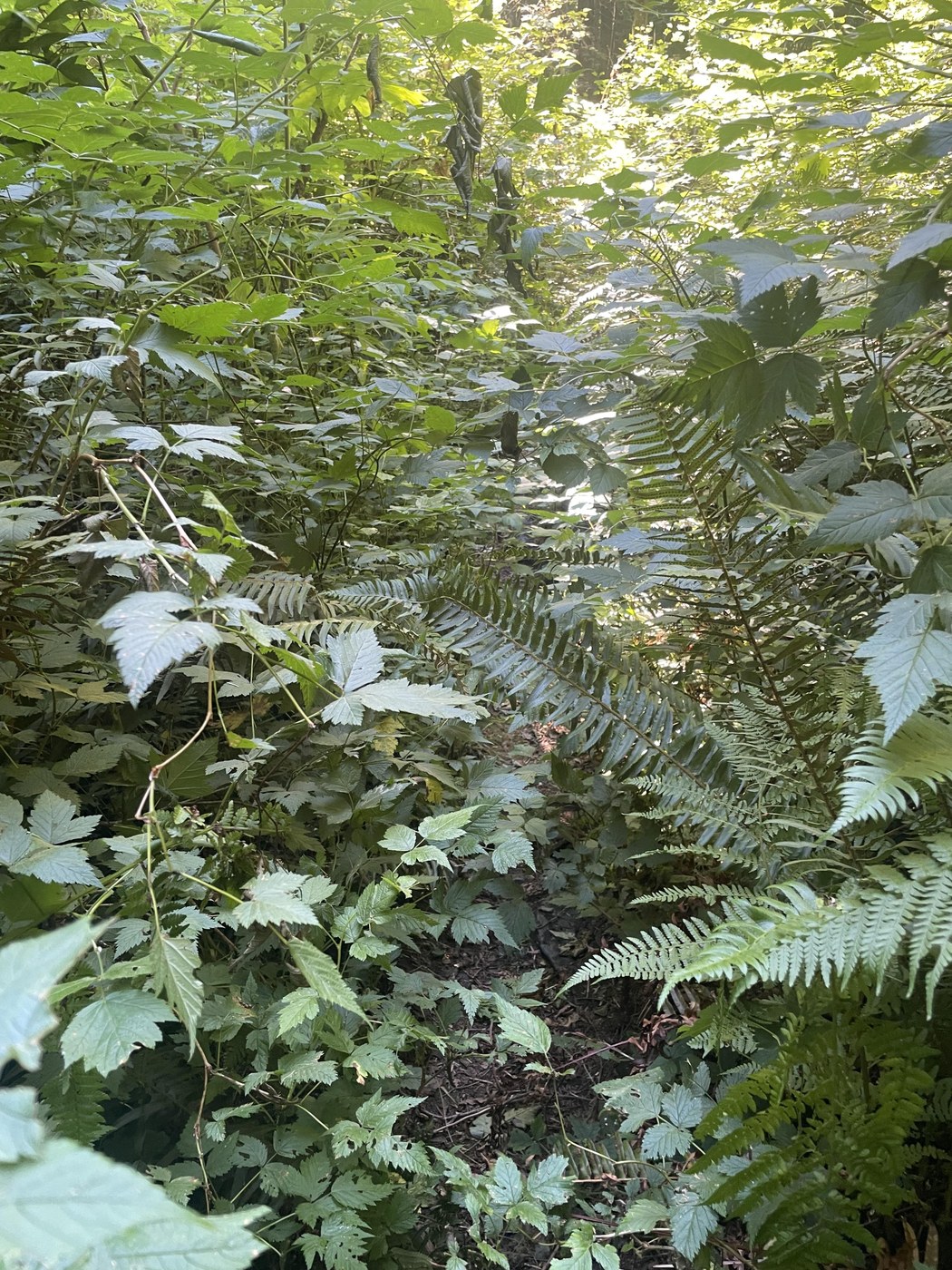 We hiked the Pratt River connector trail to find the Big Tree Trail and the biggest Doug Fir I have ever seen. There were stretches on the connector trail before the camp that were overgrown with salmon berries. The Pratt River trail after the camp to Big Tree trail is just a mile but SO overgrown you can barely see the trail and the trail itself only a foot wide - both conditions make hiking poles almost impossible to use. It’s quite rocky in places but you can hardly see them. The .3 on the Big Tree trail to the tree is a pretty rough trail. The tree is certainly worth the effort - magnificent- but the trail is a mess. Two years ago it was bad, but much worse than I remember!