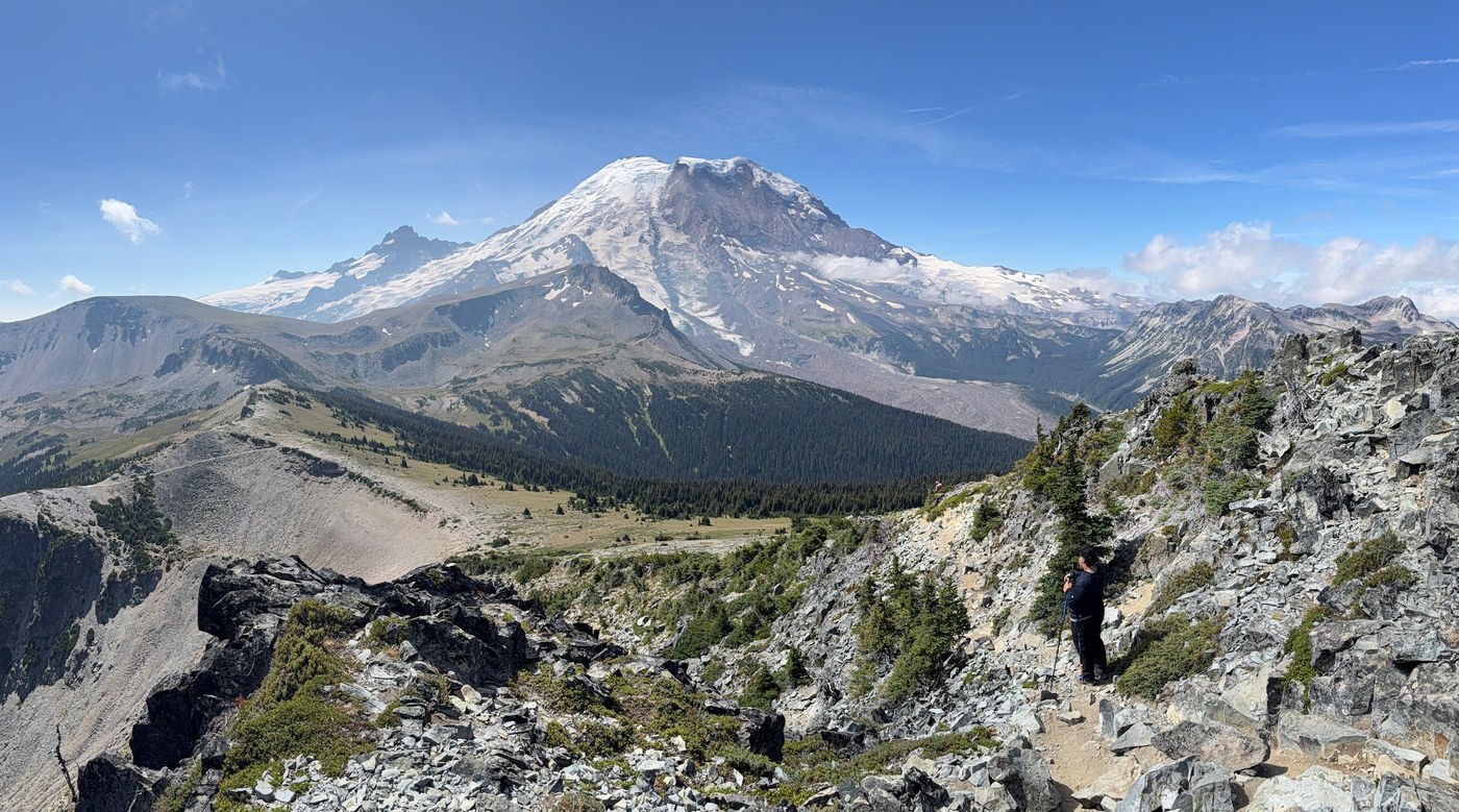 Arrived at the White River entrance shortly after 7:30 and there was no car line to get into the park. For the Wilderness Center, we were 6th or 7th in line and I am assuming some of the folks in front of us must have been doing walk-up reservations because it took almost 50 minutes to get our permit as there was only one Ranger. Got to Sunrise parking lot a little after 9:00 on a Thursday and it was about half full. We hiked partly up Skyscraper Peak before deciding to drop our laden packs and bagged the peak which was worth the views and solitude as we were the only group up there. Note that there isn’t a water source after leaving Sunrise until you hit Granite Creek Camp about 4.5 miles in (almost 5.5 if you do the side trip to Skyscraper). Trail was in great shape, only questionable area was the log bridge over the White River as the trail it connects to on the West side is a small creek so it might be slowly washing away the “foundation” of the bridge on that side. We stayed at Mystic in site 7, plenty of room for 2 tents (a 2 person and my Durston X-Mid 1). I hiked up to the lake and then the Ranger Cabin, said hi to the Ranger who was hiking down to check permits at camp and he offered to let me in the cabin if I stayed long enough, but there were no views as the clouds started to roll in so I didn’t hang out.