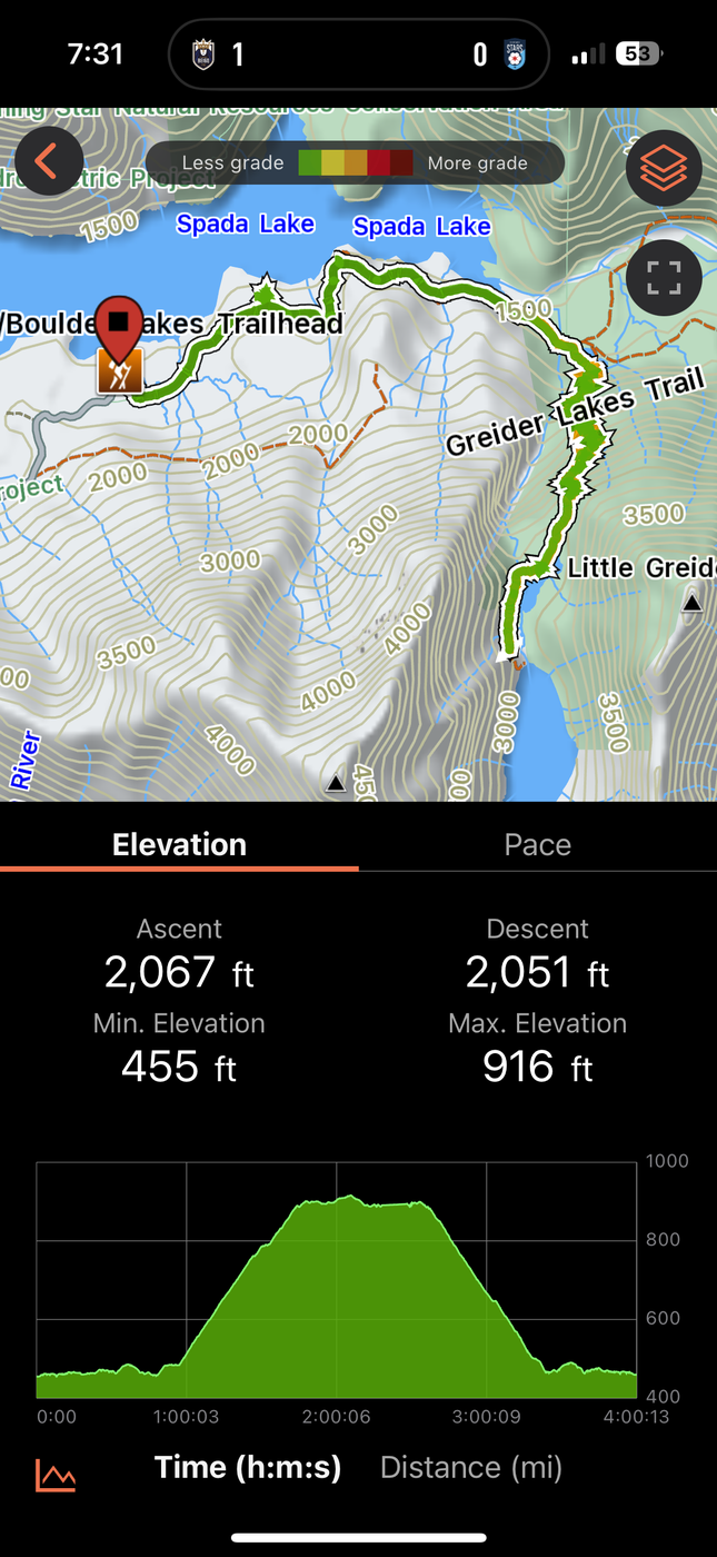 - 4 hours of elapsed time, 3 hours and 12 minutes of those moving.