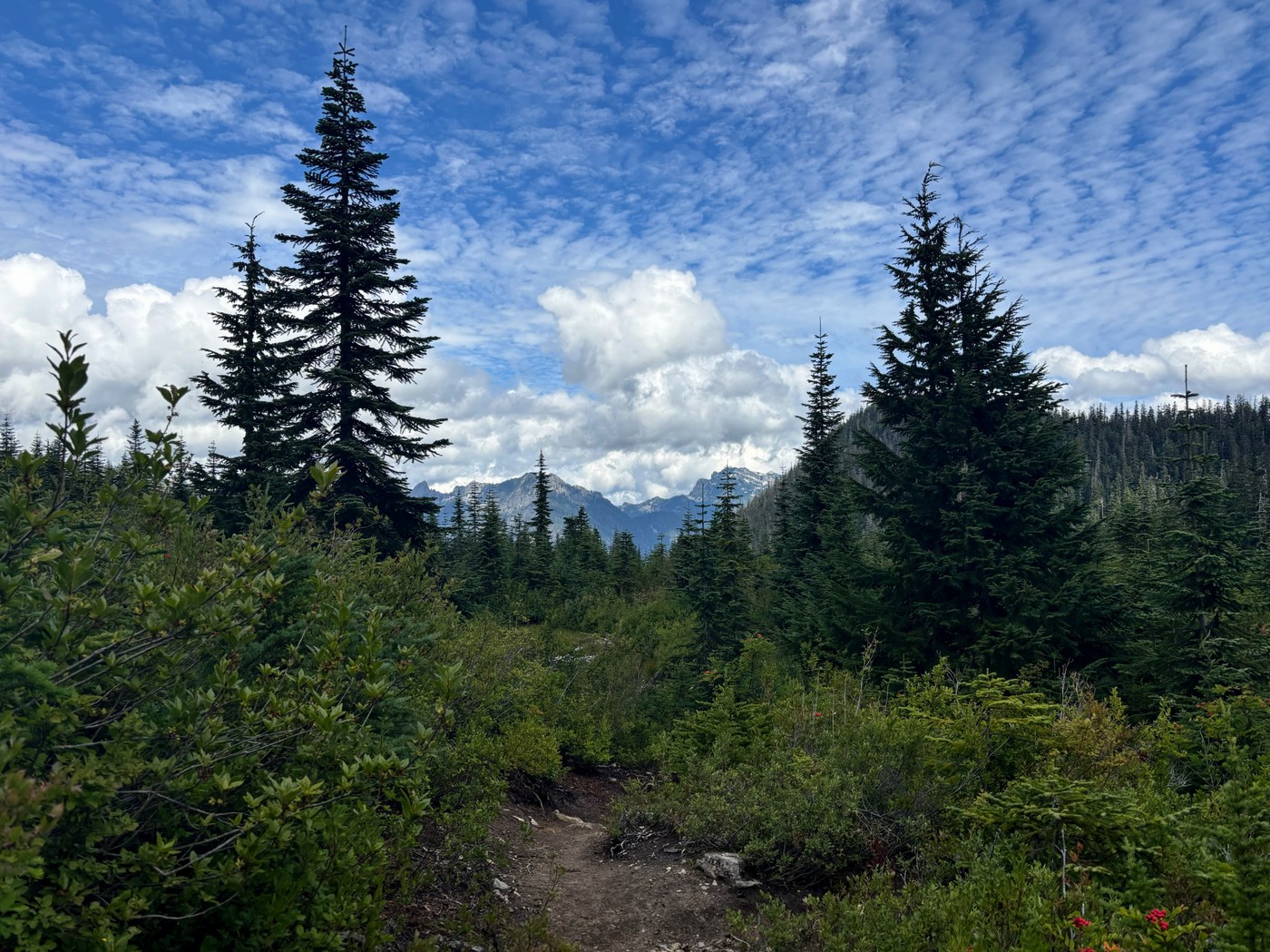 I did a loop from a path just across the road from the Mount Catherine trailhead, to Twin Lakes, the Cold Creek Trail, Mirror Lake, Cottonwood Lake, and back along the PCT to Windy Pass, then down the road to the car. I did not go up to Mount Catherine, but I’ve tagged it for notes on the road.