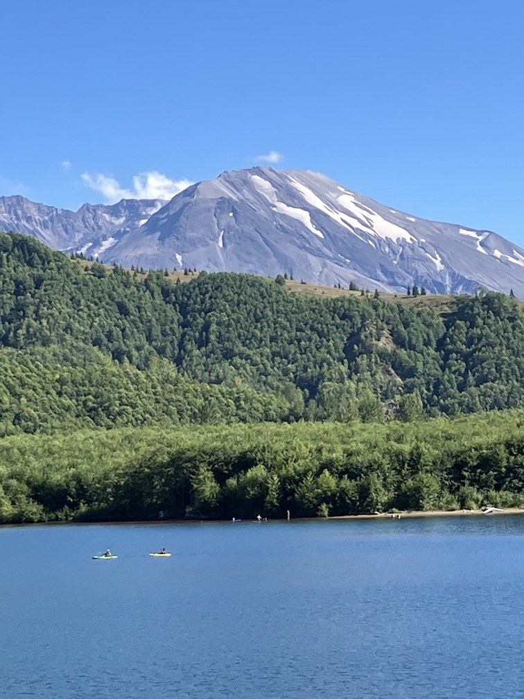 While high temps remained in the mid-70's, Herself and I decided to scope out another potential hike for the younger grandkids, so we headed to Coldwater Lake for a hike-and-lunch along the north shore (Lakes Trail 211). Even given that it was a Wednesday in late August, we were surprised to be the only vehicle AT ALL on Highways 504 and 505, the last 30 miles to the parking lot. We were wondering if maybe we missed some morning news item about belching from Mt. St. Helens (??).