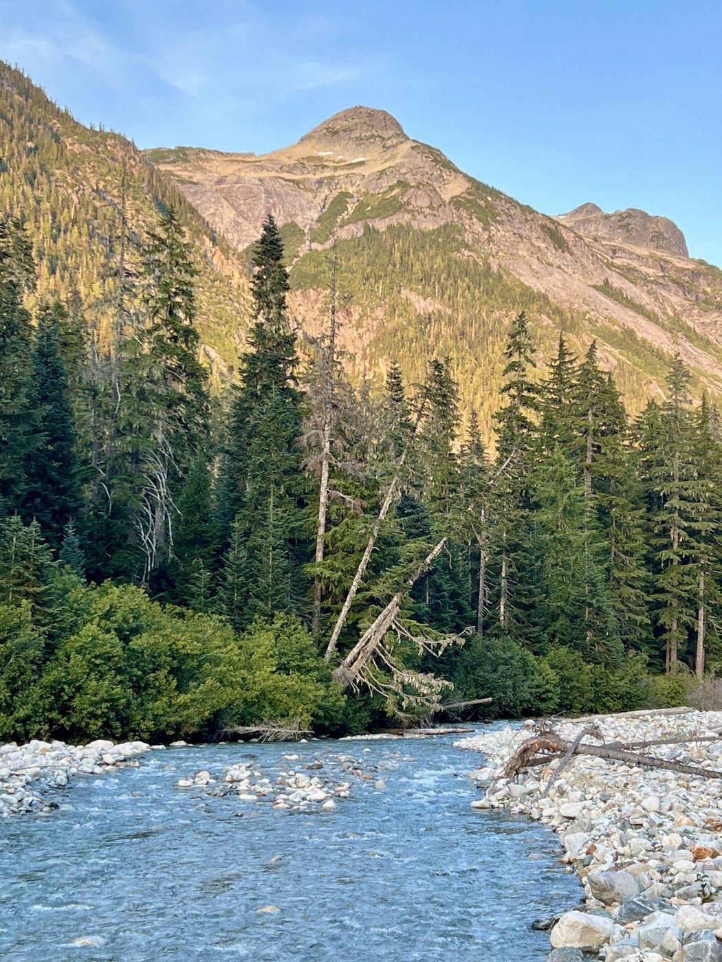 I stayed the night on the gravel bars, having been humbled by the task of talking the shifting terrain of bowling ball sized rocks piled onto each other among sand and other hazards. Years ago it was easy for me to reach the Cirque proper but nowadays that kind of walking tires me out quickly.