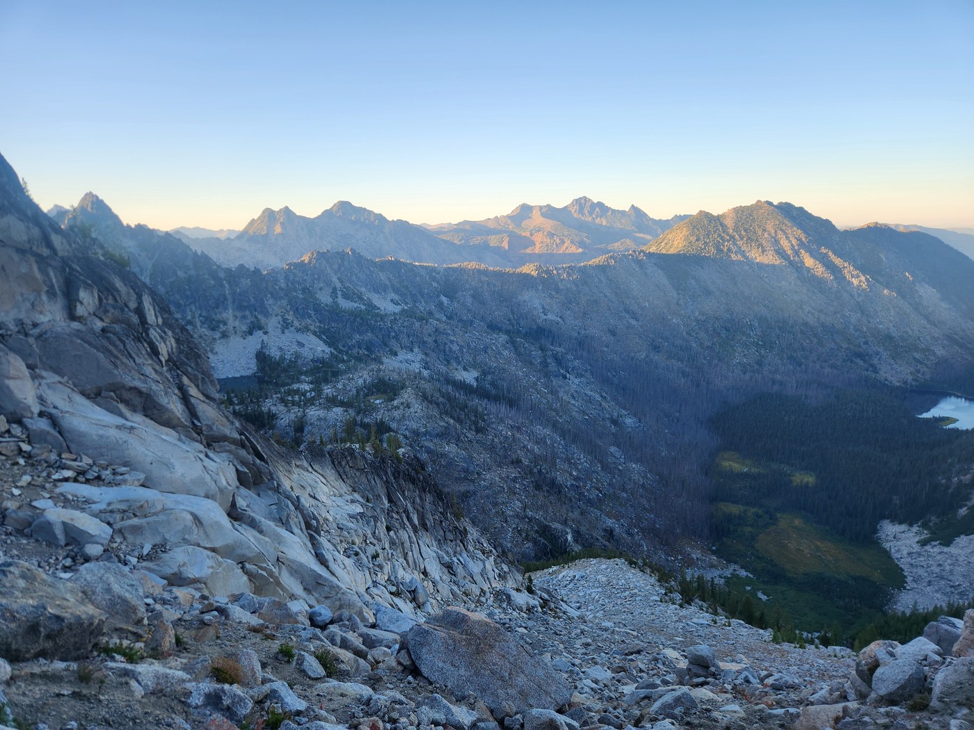 Starting at 3pm was not great, so I was rushing up to and past lake Ingalls. Overall a beautiful and well maintained trail up to the lake. Traversing around the west side quickly became a moderate boulder scramble, I should have stayed closer to the water or possible attempted the east side. Regardless I didn't have time to explore, but I was now behind.