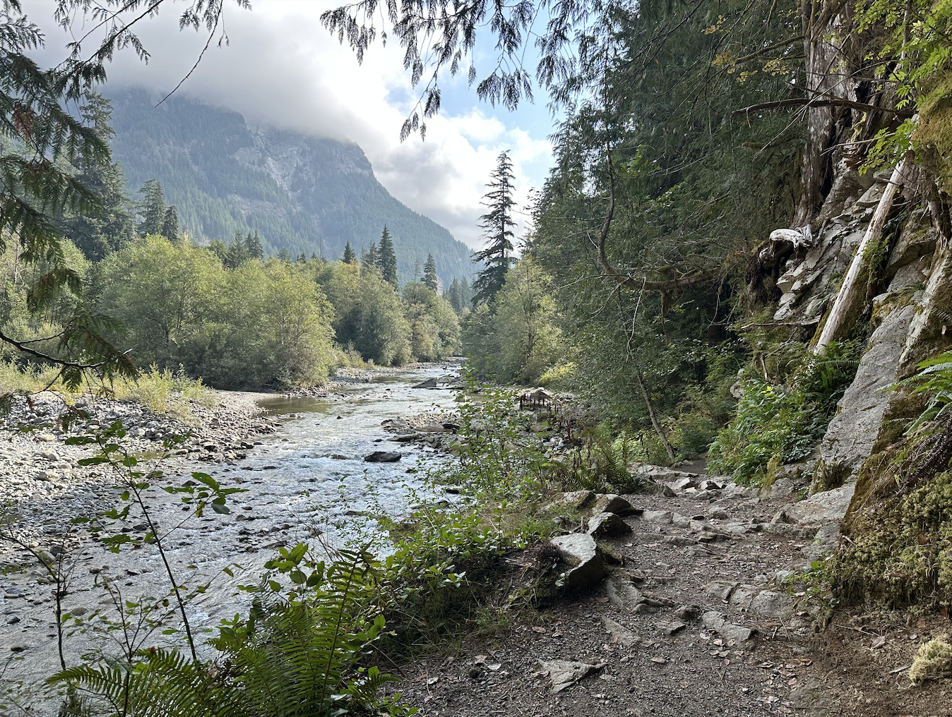 We only hiked 4.23 miles round trip today because I'm rehabilitating my sprained ankle, which did really well! This was a great hike for that. We got back to the parking lot around 1pm and I enjoyed soaking my feet in the river before heading home.