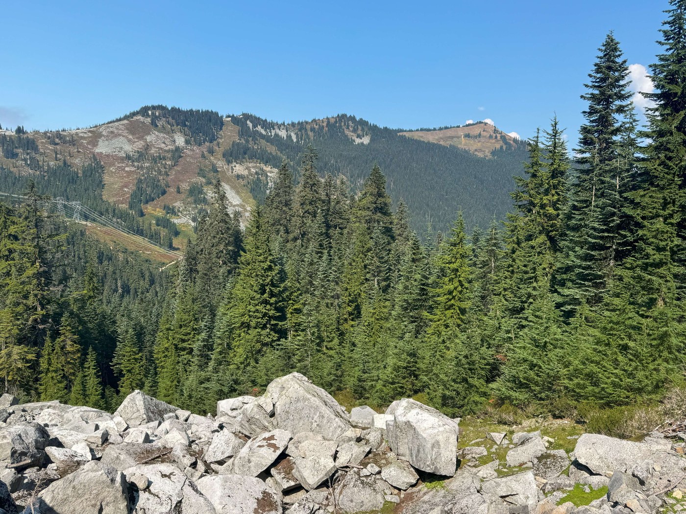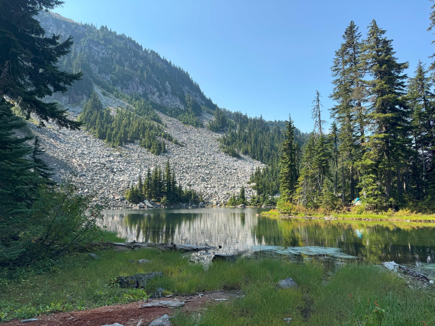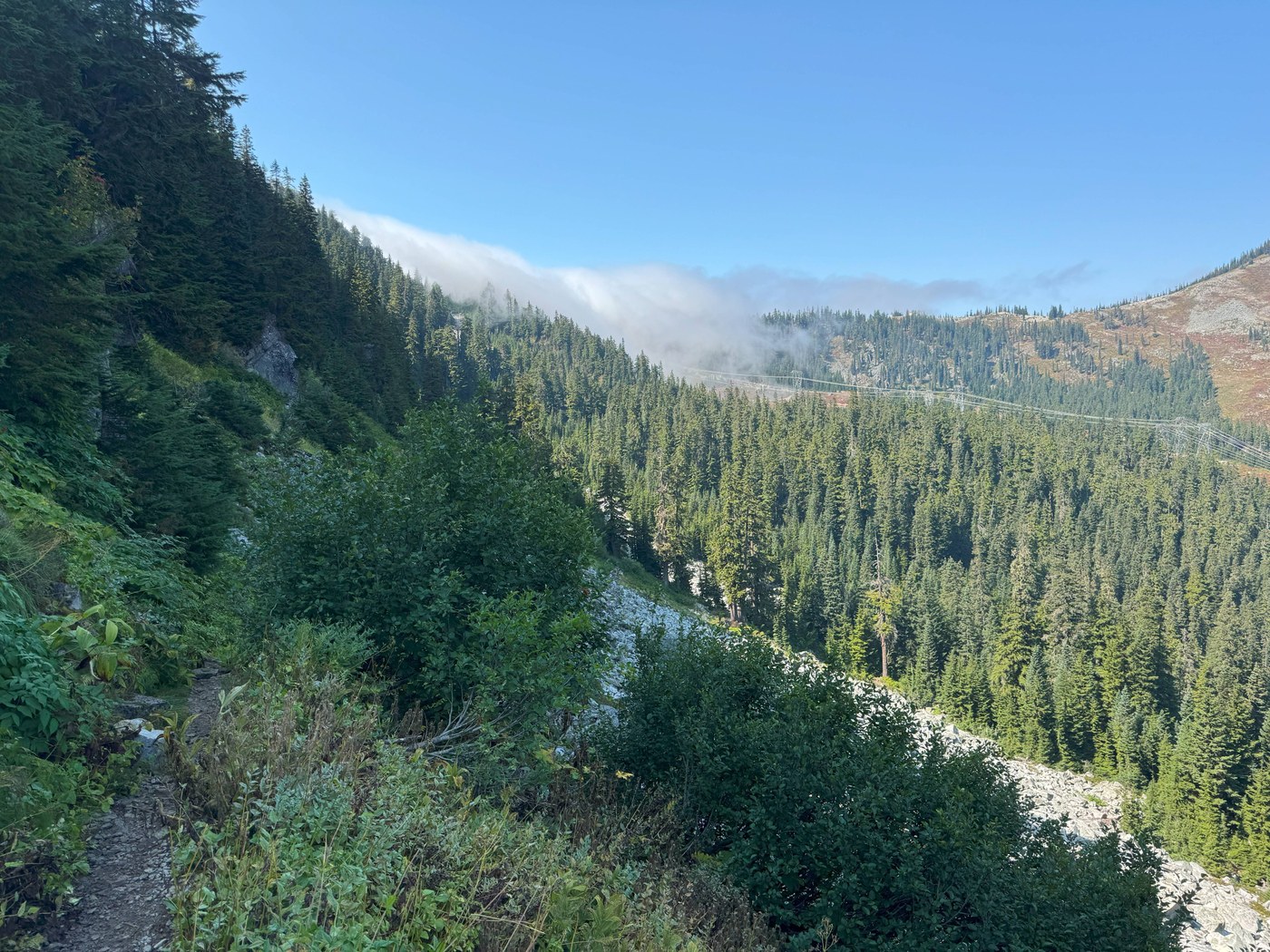 This was to be a hike to the summit of Big Chief. However, when I got to the upper chairlift terminals above Stevens Pass, fog was pouring in over Big Chief and Cowboy Passes. Not wanting to deal with blowing fog, I made it a hike to Lake Susan Jane instead. Alas, looking back at Big Chief from across the valley, it was beautiful and sunny up there. No matter. It's a lovely hike to Susan Jane. It's a small lake, with about four heavily used campsites. There is also a very pleasant box toilet (as toilets go).