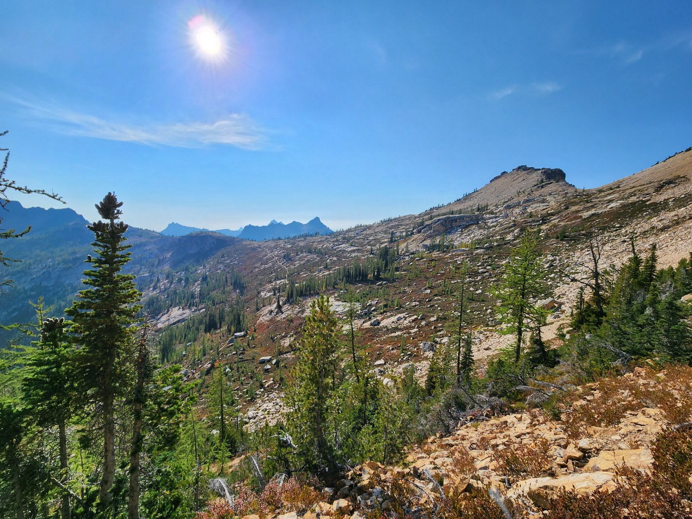 Climb up Granite Pass is beautiful, tons of switchbacks, but nice grade. Then you swing around and are above Cutthroat Creek. Next 2ish miles are pretty flat and beautiful, lots of berries and some larches turning until getting to Cutthroat Pass. I camped here and HIGHLY recommend camping at Cutthroat. Lots of hikers went to top of the knoll, but was windy and they got condensation on bags during night. I camped on the north side in the trees and there are many camp spots with rock walls about 12 inches tall to create a wind block. The sunset, Milky Way and sunrise next morning were out of this world!