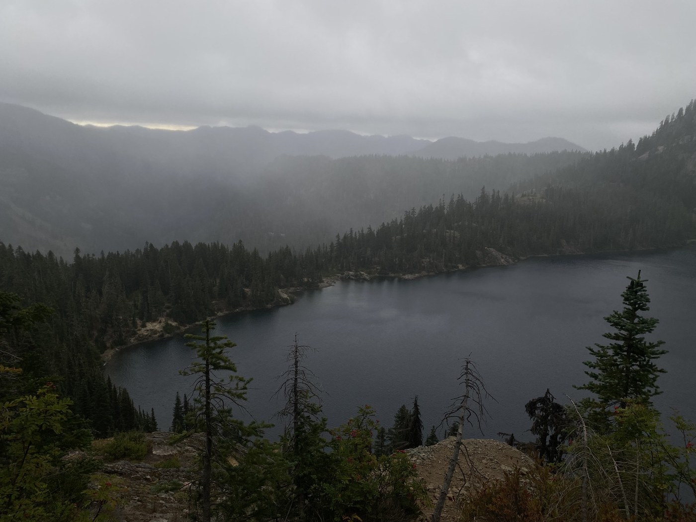 Trail Conditions - Very rocky and rooty in places. There are some log crossings/stream crossings. It can also be hard to follow at times. I would recommend using a map/GPS to make sure you’re headed in the right direction. But the trail is BEAUTIFUL. My favorite part was seeing Hitbox in the distance. There are also some tight squeezes through shrubbery taller than you, but I liked it. It was a bit cloudy/drizzly, but everything still looked amazing.