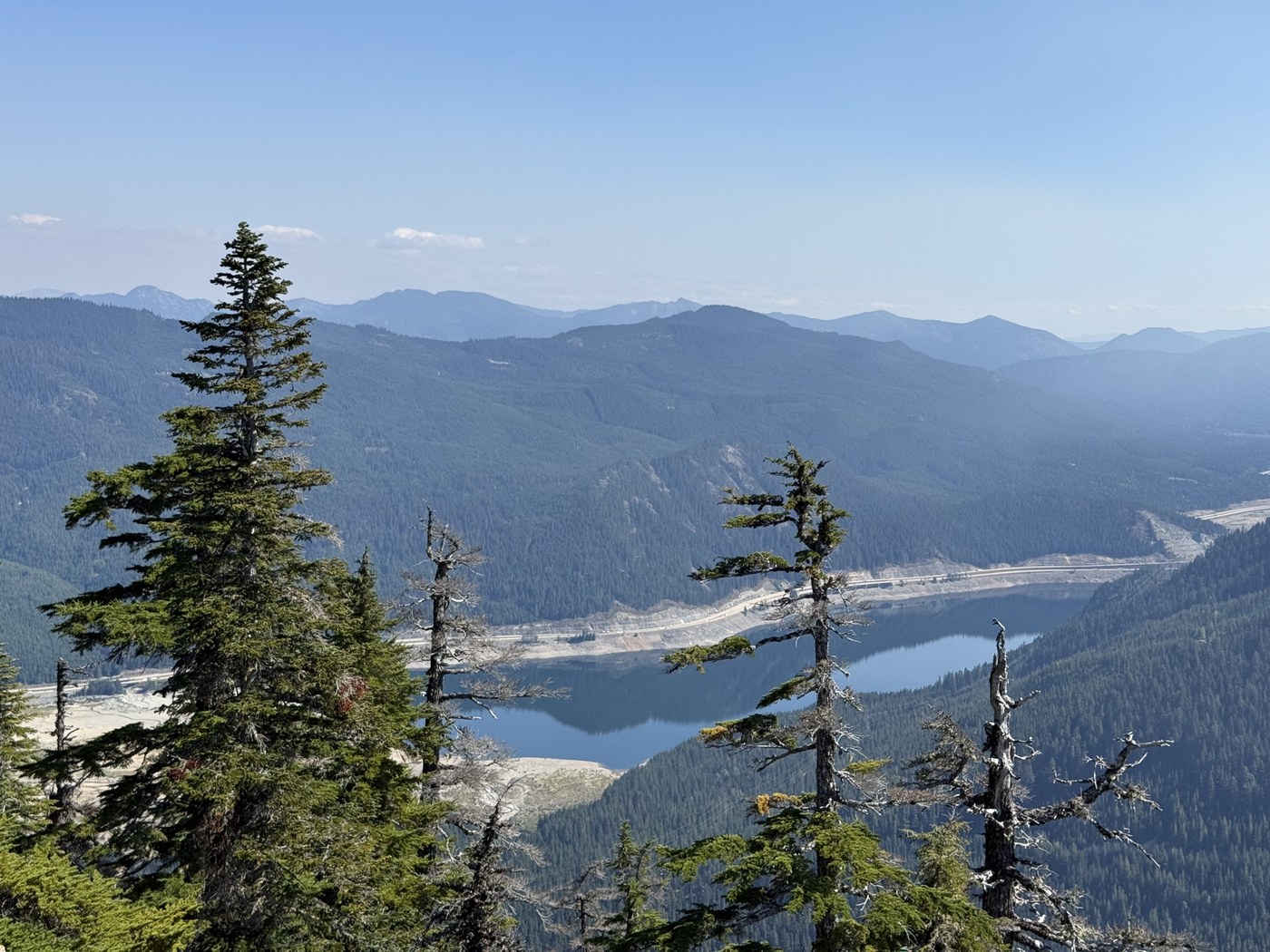 The road has some serious potholes that will definitely slow you down, especially if you’re in a lower clearance vehicle. About 1.5 miles from the trailhead, the road got a bit serious and rocky. Arriving today at midday, I had no issues parking across from the trail heading up to the summit. There were still spots for at least two more cars. I saw four hiking parties departing as the dog and I were heading up, but we ended up having the summit completely to ourselves and saw no other hikers for the rest of the hike, although I did hear in the trees potential campers at Twin Lakes.
