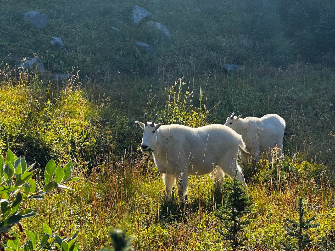 Took the long route to Grand Park, from Sunrise instead of Lake Eleanor, to see what's happening in Berkeley Park. And we weren't disappointed as there was a herd of 30 or so mountain goats.