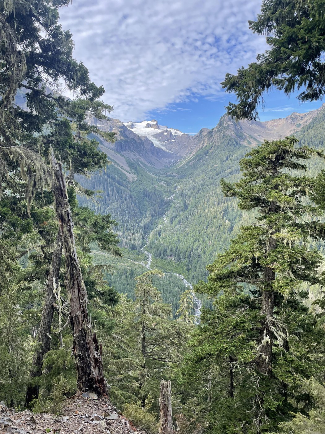 Lovely 4 night backpack from 9/10 PM to 9/14 AM with pairs of 65 year old and 33 year old legs. Glorious weather with limited nighttime drizzle at times, and a welcome rain on the final night and hike out to enjoy the “rain”forest. No large mammal sightings though we witnessed a probable mountain beaver, frogs/toads, grouse, salamander/newt, random small scat, distant tree fall and elk bugle. Rare blue berries though many more ripe ones past Glacier Meadows. Trail use relatively minimal, and one of us enjoyed the ladder climbs and trek to the lateral moraine of the glacier all by themself. Outbound past the Guard Station there is a double water crossing over an apparent fork not noted on Gaia that can be crossed via a log or log jam, or take a wet crossing either barefoot or with water shoes. Bear hang cables at Happy 4, and Elk Lake in need of repair. Priveys clean and airy- nice design though BYO. Great moments and company in the woods that exceeded my expectations.