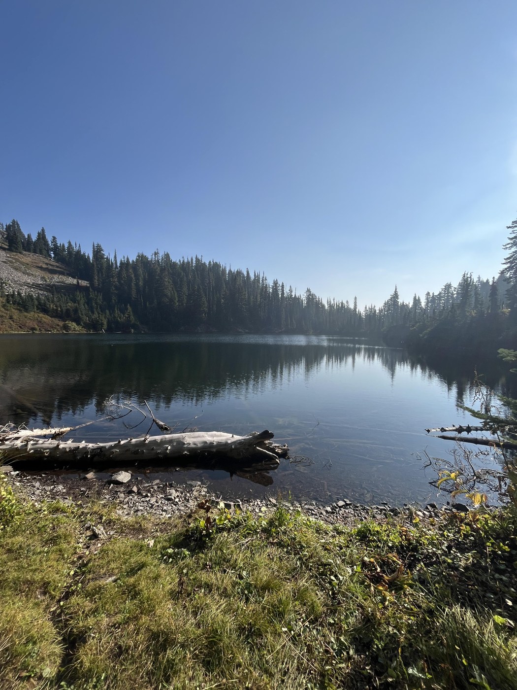 There's a fallen tree on the forest road leading up to the parking lot. Most cars should be able to drive under it, however (my CR-V made it, as did many other vehicles). On the trail, the descent down to the lake has some pretty steep and sketchy spots where you could easily lose your footing. I think a previous trail report pointed this out as well and recommended WTA work party to build some steps for safety. Other than that - it was a beautiful day for a hike!