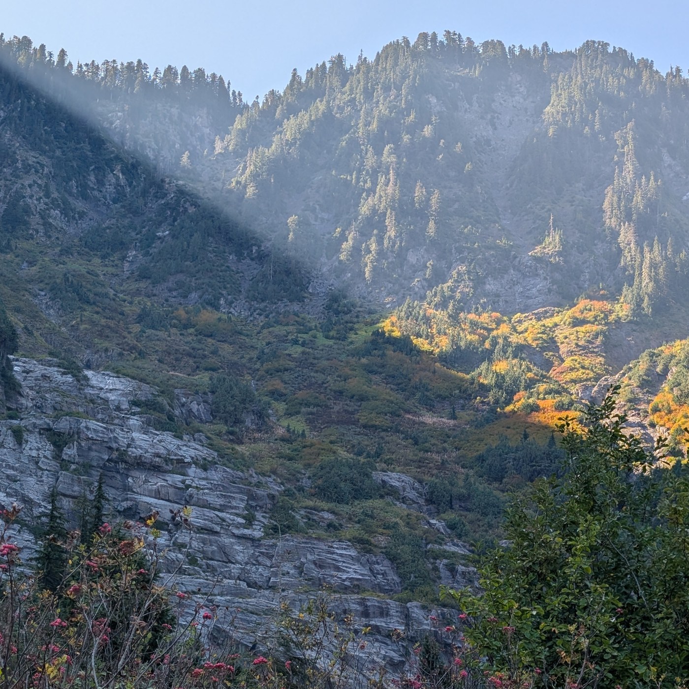 No wildflowers or berries now, but there were a few frogs making a racket down by the river. The fall foliage is just getting into gear on the upper slopes.