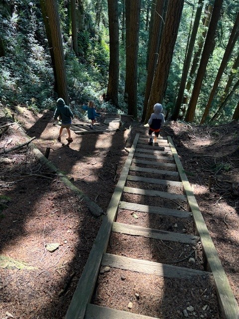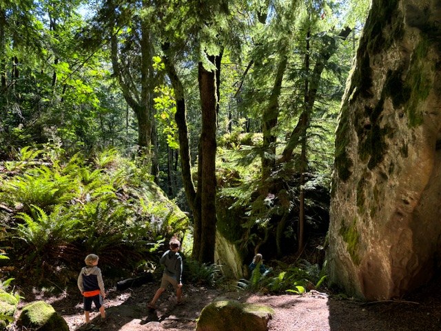 We parked at the Cyrus Overlook Parking lot and hiked down rock trail. We counted 218 steps on the way down. A few trees starting to yellow, but mostly you are in luscious, green forest with lots of moss. We love rocks. Any trail with rocks is amazing. Boy did we find some amazing rocks to climb and look at. The rock features here are the highlight of the trail. Take your time in this area so you can really enjoy their stunning beauty. The trail has one tree down towards the bottom of rock trail and few areas where the ferns and grasses are encroaching the trail. Overall in great shape! Once we finished rock trail, we hiked over to Lost Lake. I see why it is “lost lake.” My littlest asked if we were lost because there was no lake. We were also the first on the spur trail to Lost Lake, so we encountered all the spider webs. We eventually found the rock overlook of the lake and did some water coloring and had lunch. We also thought we heard other hikers but it turned out to be our echos. This was fun for the kids to hear. We only saw 1 hiker and 2 horseback riders the entire 2.5 hours we were there. Came back the way we came down and while it seemed like it would super hard, the mix of stairs and flats were nice. Much easier than a straight up. I highly recommend rock trail. I think the other lakes near Larrabee are better lakes to visit than Lost Lake. Next time we’ll probably include Fragrance Lake in our trek instead of rock trail.