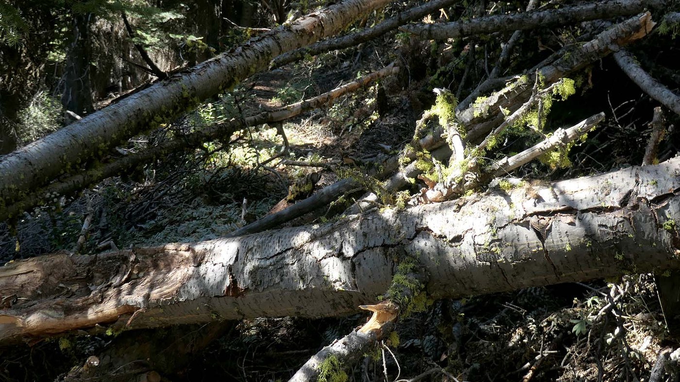 Lower Eagle Lake Trail: 25 logs over the trail, moderately difficult for hikers, have to go XC to get around large logs