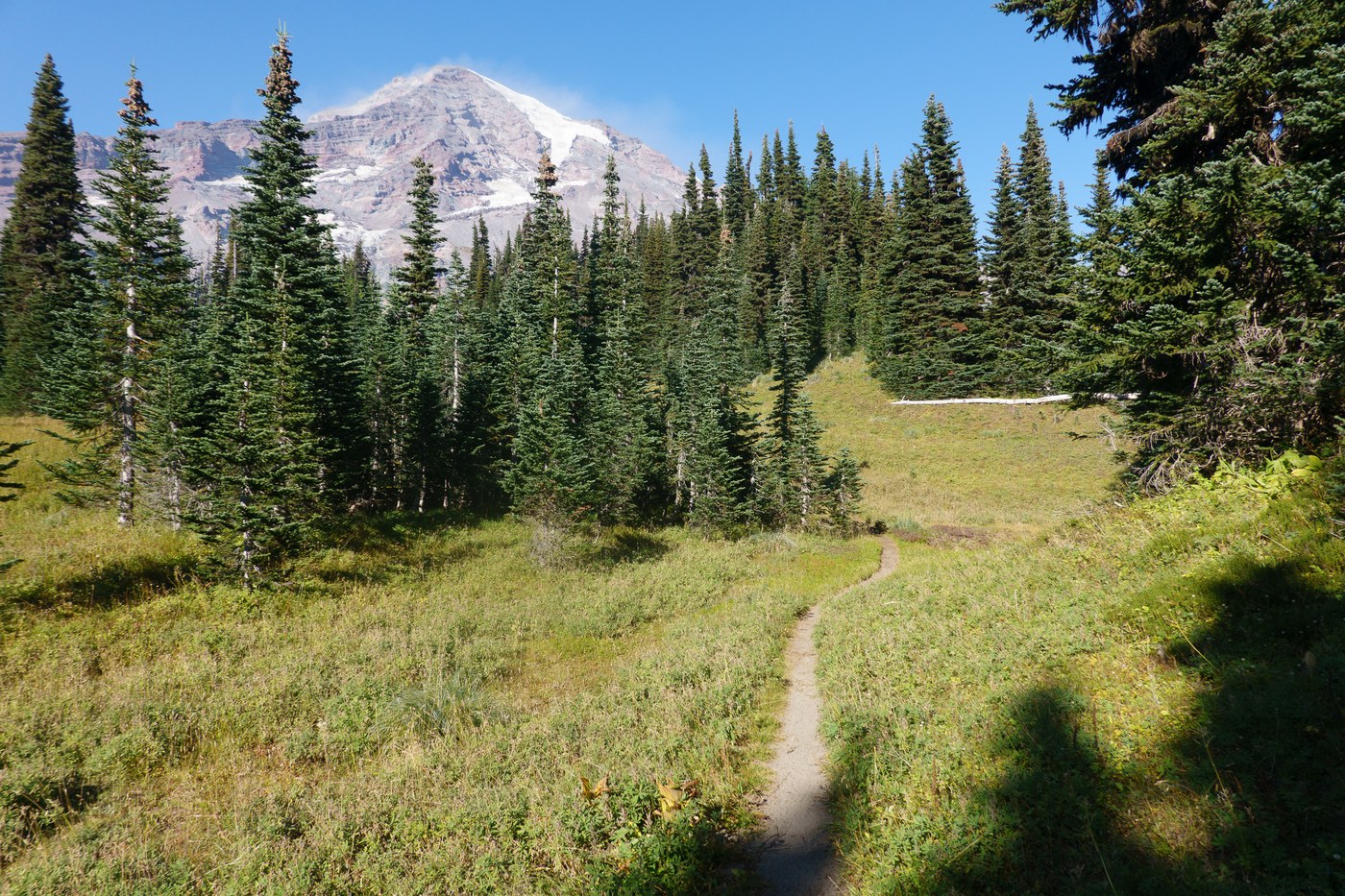 Trail Conditions. For what I remembered as being a "tourist" trail, there was a surprising amount of roots and rocks on the way to Comet Falls... The trail actually improved a bit above the falls, and was decent until 6,100ft (a good turnaround point). Upon transitioning from the subalpine to the alpine, the trail wasn't always well defined, and there was plenty of loose dirt/gravel/rocks. The trail heading towards Mildred Point had been brushed out thoroughly, up to the river crossing. Past that, the trail was still easy to follow, but there were sections where it heads straight uphill on soft/sandy soil.