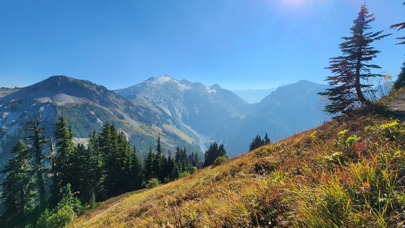 11mi RT with ~3k feet. Gaia says 05:06 hrs total time with 04:32 hrs moving time which is mostly because the first 3 mi is relatively flat and can speed through. The smoke was there but it got better as the day progressed. Quite a late start per my usual standards. Reached and started hiking at ~noon. Did not expect any water but was surprised with some water at ~ 2 mi and 3 mi respectively and also possibly at Hannegan Camps (judging by the sound of rushing stream though i didnt actually check). Last mile is almost without any tree cover and is ~ 1k feet for 1mi.