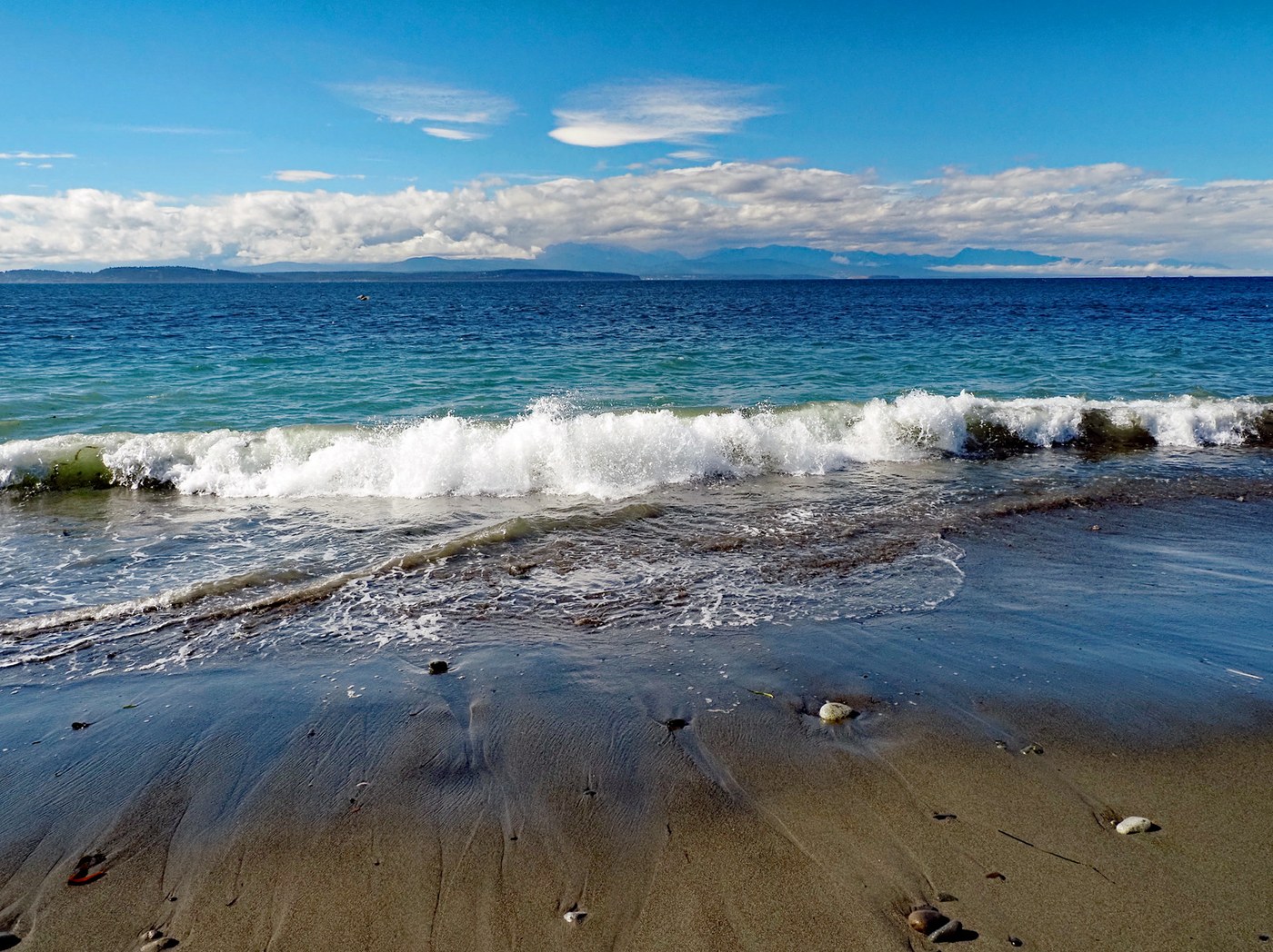 I considered this a bonus day hike. The earlier weather forecast was not looking good there was a nice break of "mostly sunny" until late afternoon. I started at the beach trailhead. I was a little concerned about the tide but at around 1100 am the tide was at 6 ft and there was lots of space to walk along the shoreline. at about 1.5 miles I hit the trail that goes up to the Bluff Trail with great views of Admiralty Inlet and Perego's Lagoon. To the west the Olympics were mostly obscured and what appeared to be heavy rain. Once I was at the south end of the bluff looking east to Ebey's house and blockhouse there were clouds covering the Cascades and Mount Baker. All the hikers in this area were in the well known rain shadow particular to Whidbey Island.