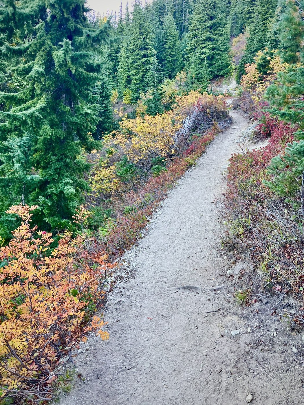 Trail itself was mostly dry and rooty/rocky except for the first section which follows the stream bed. I avoided that section by stepping to the road where the trail intersects and road walked to my car which was parked outside the trailhead on the way back. Air smelled a bit smoky at times but overall, it was a beautiful day and the lake was gorgeous as always. I got a late start and did the last half back by headlamp. There are 18 switchbacks on the way down.