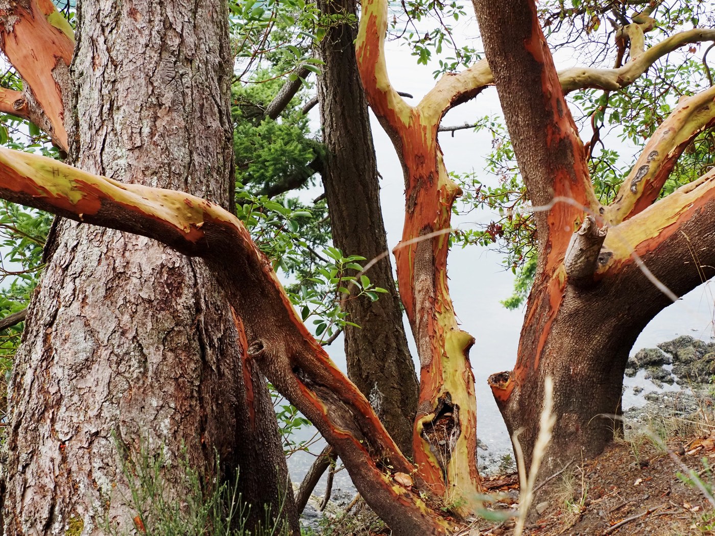 I started at the Rosario area and went up Rosario Head and then took the trail that goes along Sharpe Cove that climbs and then drops down to Bowman Bay. From there I was able to walk on the beach and around the rocks below the headland-but just barely as the tide was coming in. Once on the tombolo there was lots of room to continue on to Reservation Head. I went around the head with a few excursions on side trails with views of the small inlets and steep rock cliffs. On the return trip the tide had nearly covered up the rocks below so I went up and over the headland.