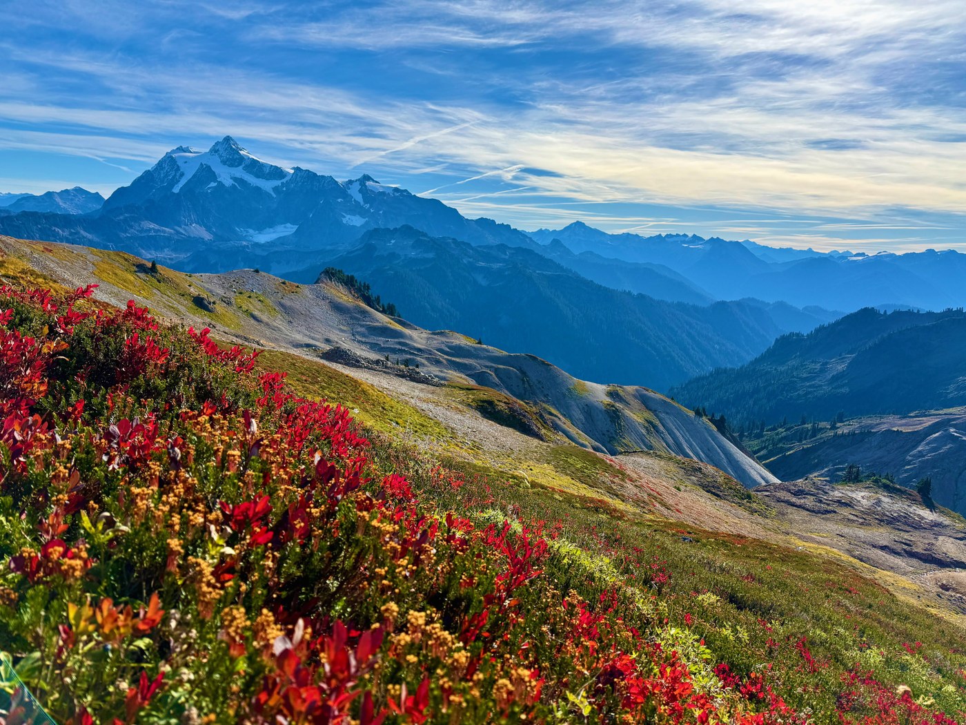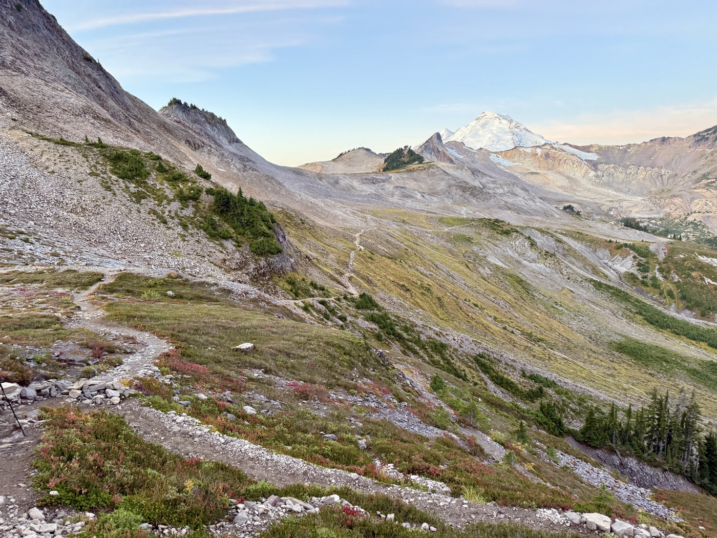 We left Bellingham at 5:10am, arrived at Artist Point at 6:30am. The lot was already half-full. But we had the trail mostly to ourselves all the way to Ptarmigan Ridge, which was THE BEST.