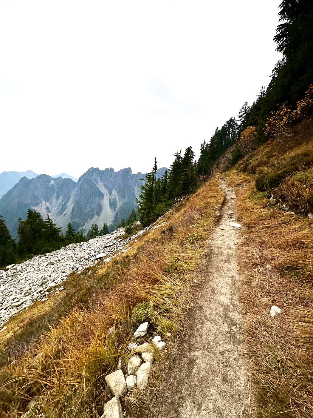 The Katwalk area trail is dry and solid, opening up to great views of the Alpine Lakes Wilderness. However, it got pretty smoky by this point and the views just got hazier further along. I was hoping to get to the lakes but the smoke and several instances of fresh bear scat convinced me to turn around about 3/4 mile past the Katwalk.