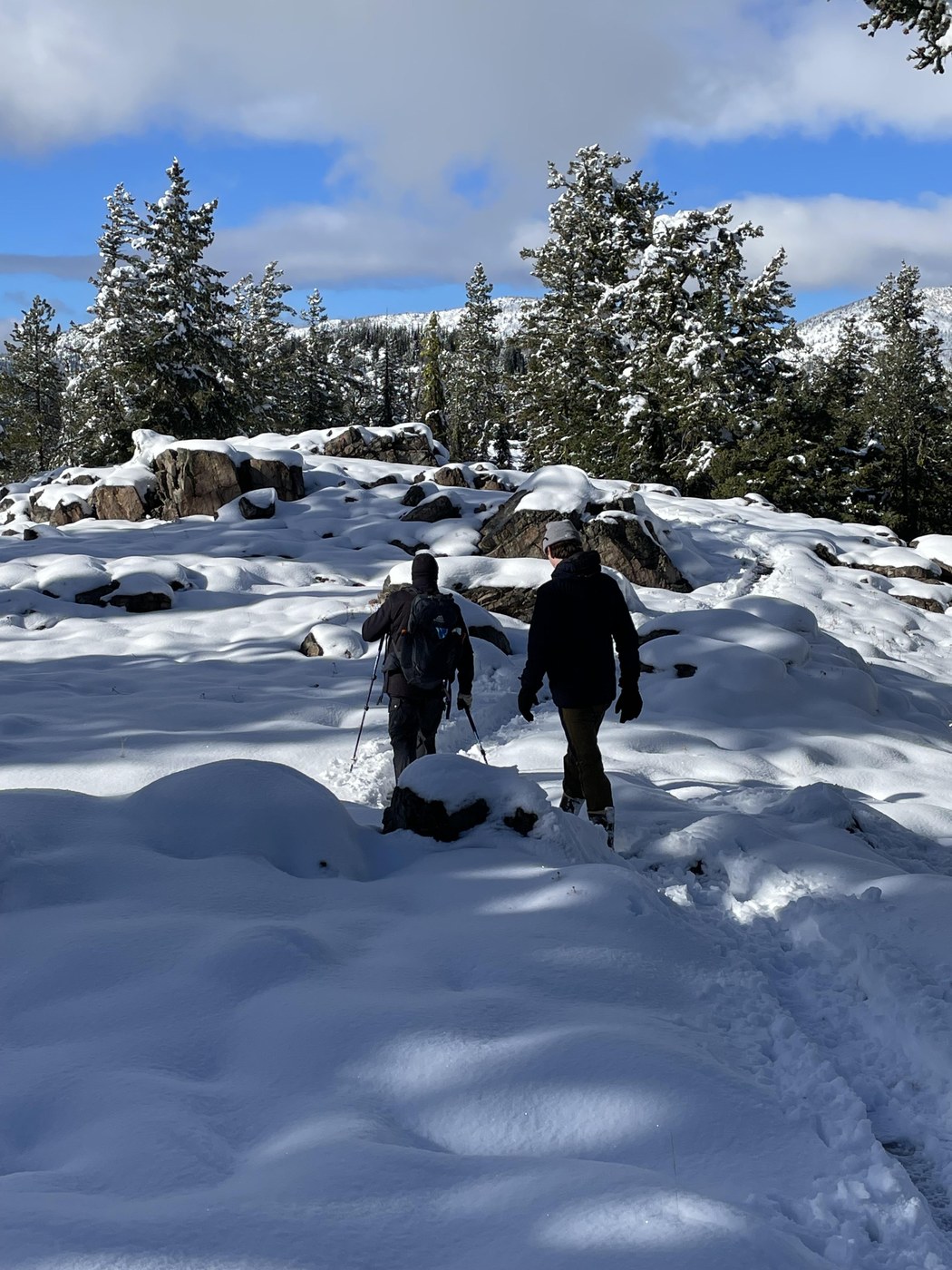 Road was snow covered at about 5 miles above Mazama. High clearance truck was helpful but saw a Subaru Crosstrek that also made it. Snow had melted some on the road in the way down. Trail was fully snow covered. At places it was easy to walk in trail hiking shoes but higher up where it gets steep, we turned around due to how slippery it was becoming. Our early 20’s son continued on to the ridge. Overall a beautiful hike.