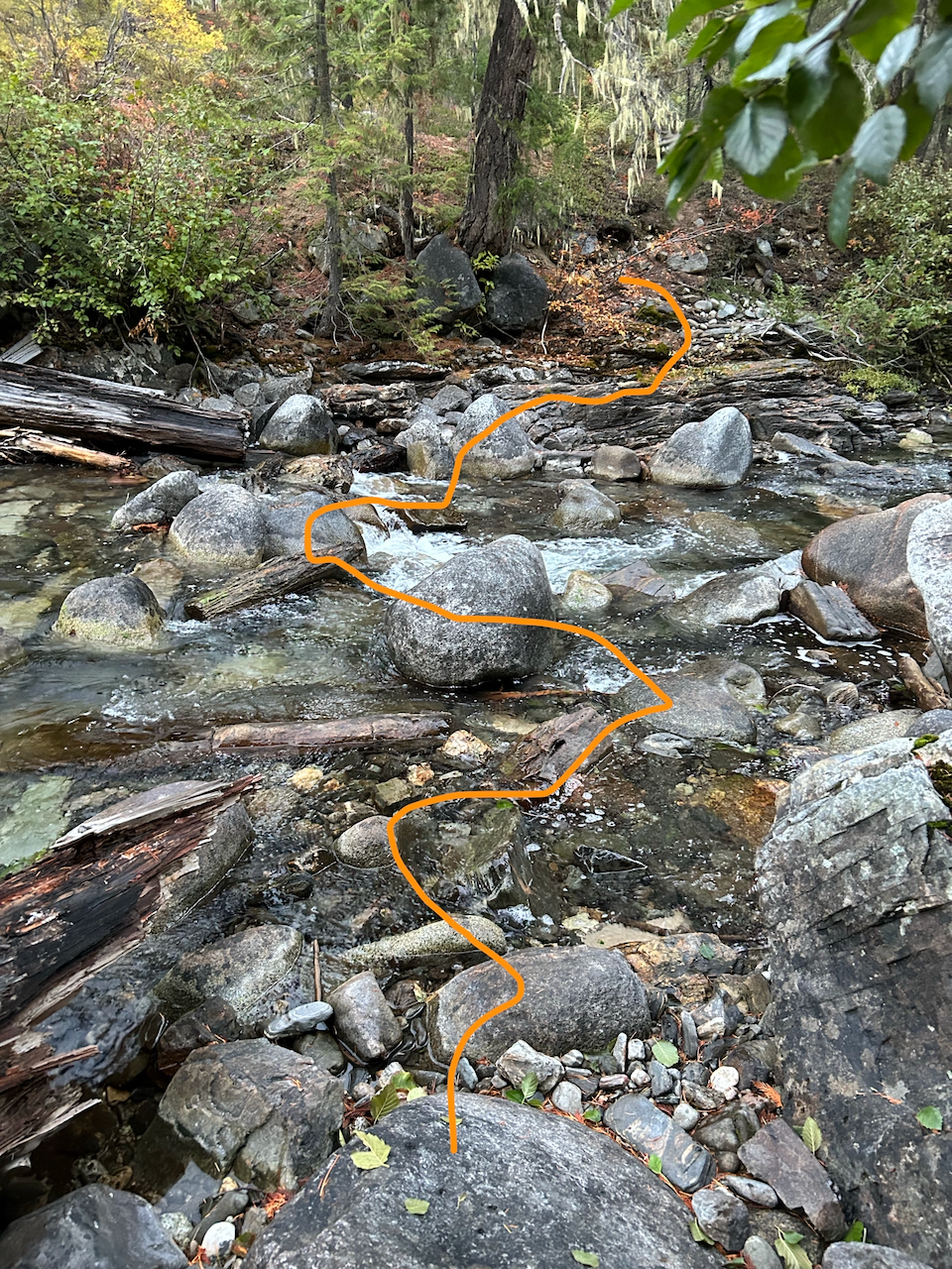 The Icicle Creek crossing was a bit tricky with the bridge out, but the water was low and I found some rocks to hop on (they were slippery/icy, so I might bring spikes). Look for the pink survey flag to the right (north) of the bridge to get down to the crossing.