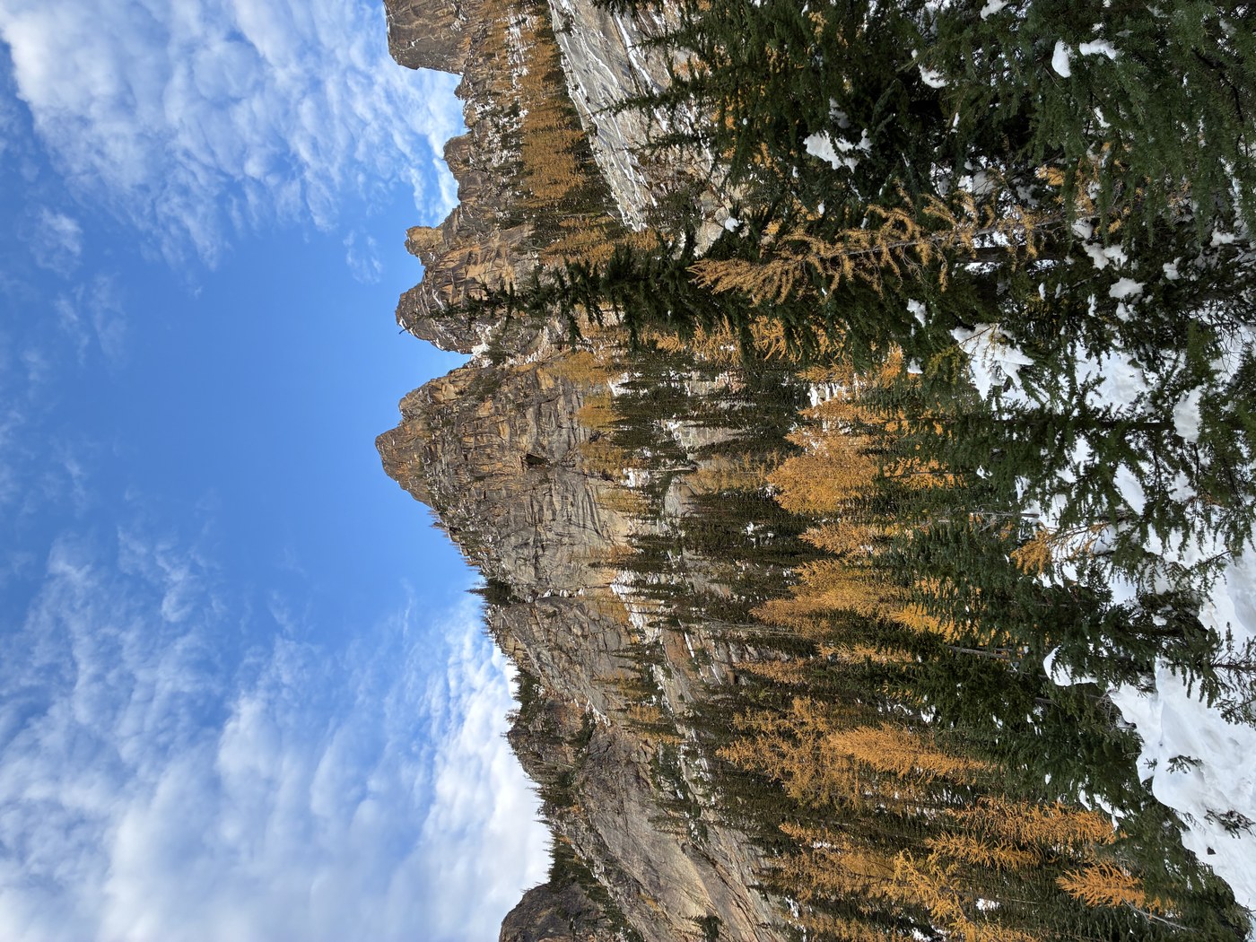 Hiked on a Wednesday afternoon around 4pm, the parking lot was mostly free of snow, any cars can make it. However, on the trail there were lots of snow, melting a bit under sunshine, generally on the path it was compact snow. The larches were mostly yellow colors now, gorgeous in the snow. You can also have a glimpse of the early winter spikes in the back. There was still some green larches around the lake. The reflection was nice too. I caught the sunset on my way back. Poles and micro spikes(or yaktrax) are strongly recommended if you don’t want to slip on snow.