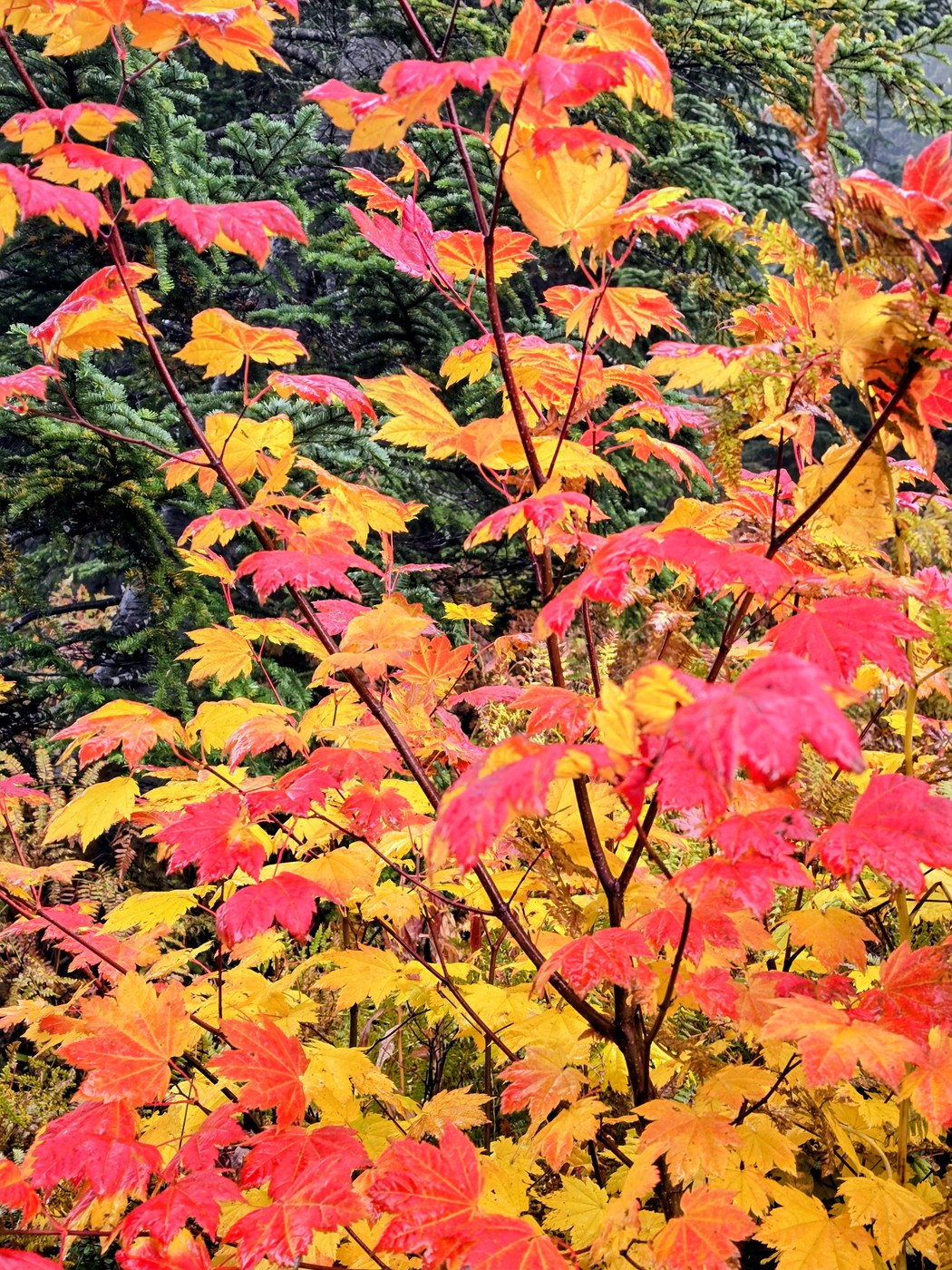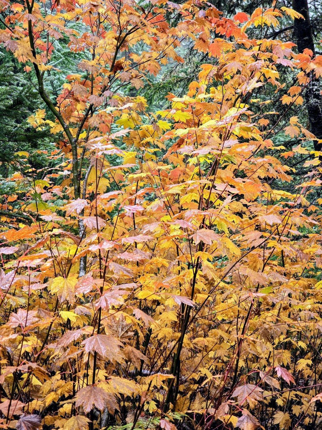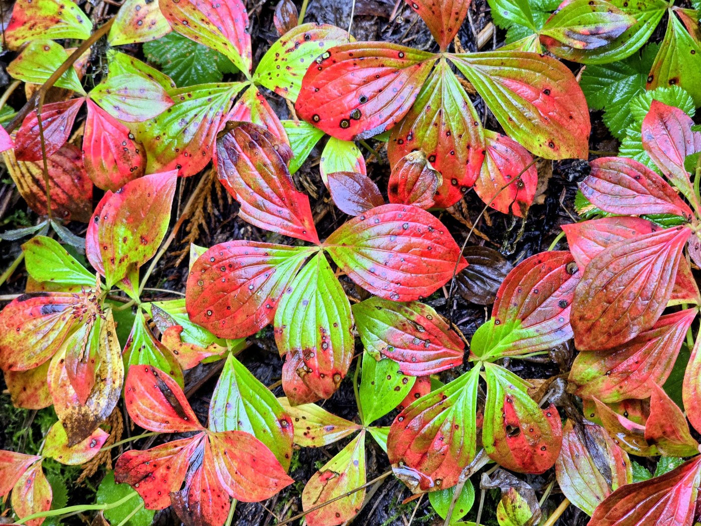 A huge thanks to WTA and all of the volunteers that built this wonderful trail!! The quality of the trail was excellent, not a single puddle and excellent tread throughout! The last 50 yards of the trail had a half inch of rapidly melting snow. The fall colors were very good, especially the rocky mountain maples (photos 1 & 2), bunchberry (photo 3), berry bushes, bracken ferns, and lots more. It was a cloudy and misty Monday, making for some pretty droplets (photo 4, mountain ash berries) and no crowds, we only saw 1 person. We took the Beckler River road there and the Index road back, I'd say the Index road is easier on your car and prettier. A big thanks to the individual that cleared the blowdowns on the Index road! Someone spray painted a bullseye on the map at the trailhead and the same person probably did the donuts in the parking area. It's so much easier to be a destroyer than to be a builder. I'm so glad to be with WTA and the hiking community!