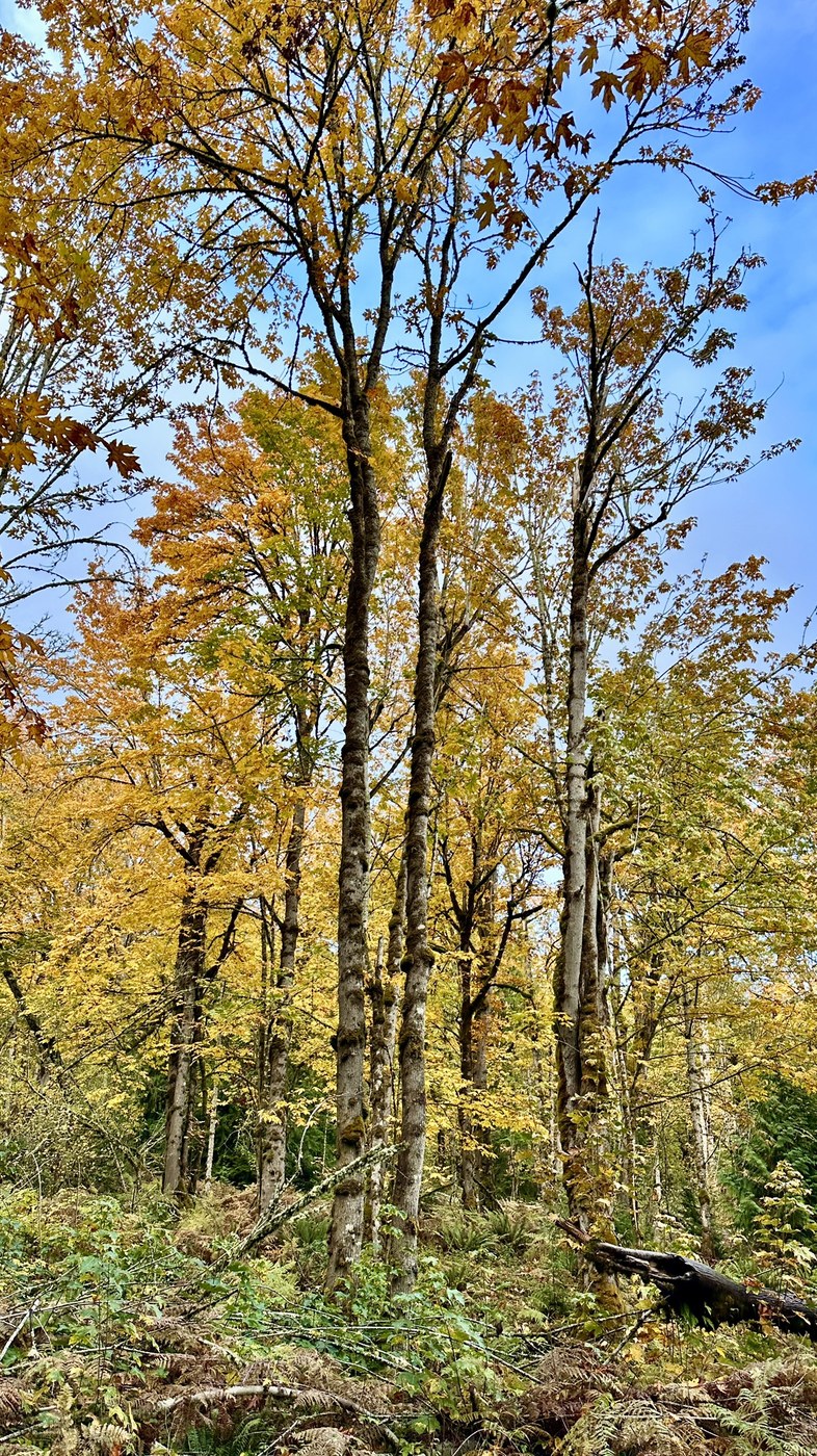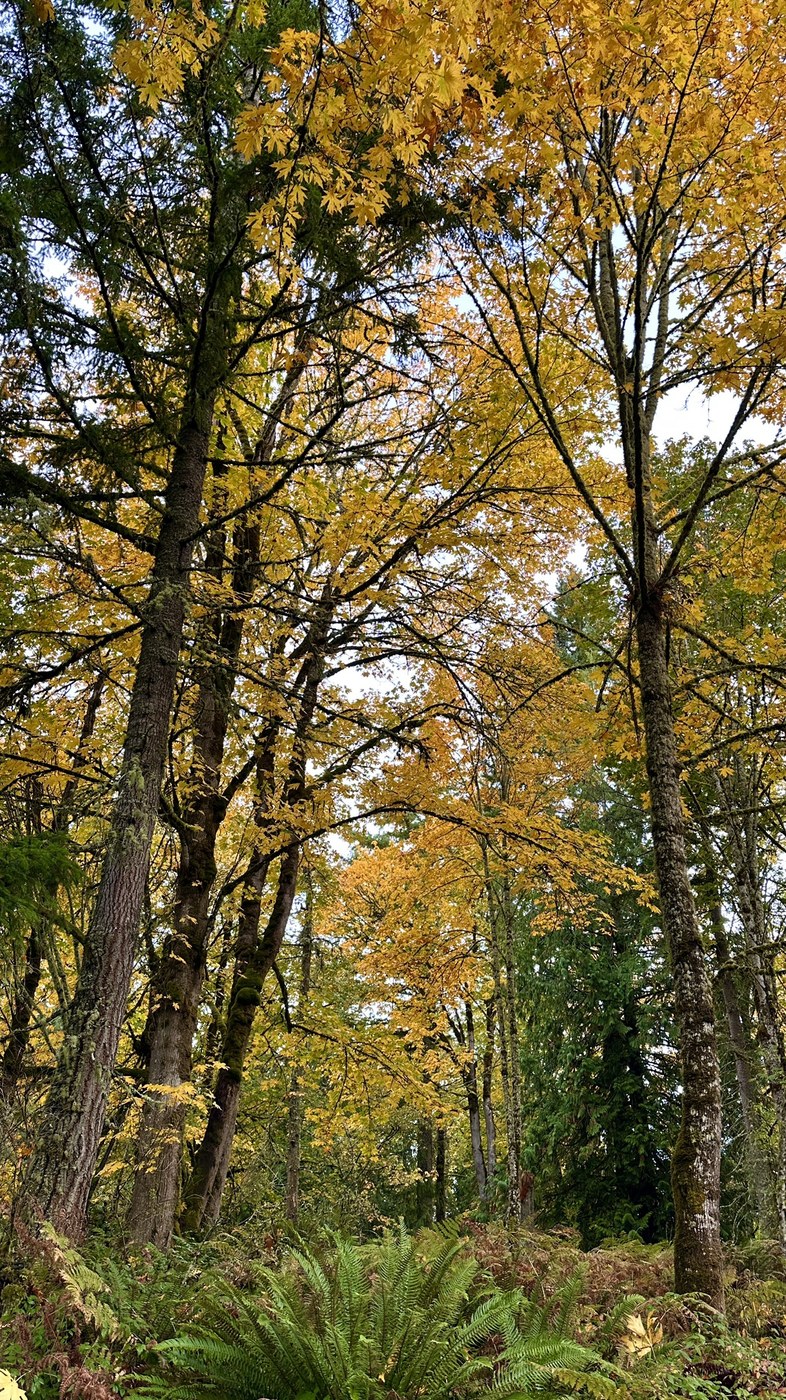 The maple trees are ranging from bright yellow to green. Not many leaves have started to fall. Everywhere you look the leaves on the plants and trees are displaying a stunning array of colors.