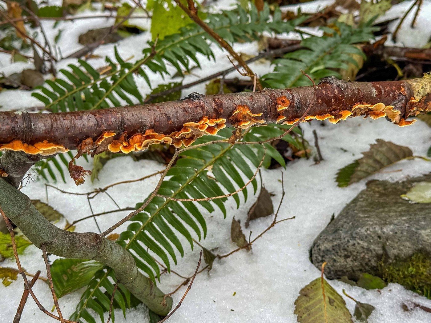 What surprised me most was 1) how little treefall we encountered -- only two -- and 2) the number of smaller alder branches bending toward or stuck to the trail from the snowfall. I think we brushed off and cleared 40 boughs for easier hiker access and to save the foliage.